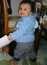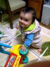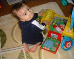 11月18日で9ヶ月になったよ~~~♪これまでゆーーーっくりとマイペースに成長してきた僕☆ミ振り返ってみると、毎日とっても元気だったような?(>▽<)ここ最近ではヨボヨボながらに、つかまり立ちまで出来るようになって、自分でもびっくりしてま~す(*^^*)誕生日だ、というのに、今日は朝からインフルエンザの予防接種に行ってきたよ~^^;しかも出かける前に、折りたたんで立てかけていたバギーが僕の方に倒れてきて、おでこにタンコブできちゃった(>。。