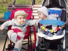 お隣のマンションに住むお友達と一緒に公園に行ってきたよ~(*^^*)待ち合わせも、お互いのマンションの間で・・・やっぱり近くにお友達がいるのはとてもいい~♪♪♪素敵な出会いに感謝感謝m(>_<)m公園までの道のりは道路自体がものすごく狭くって、バギーを横に並んで歩いていて後ろを振り向くと・・・なんと僕たち交通渋滞を巻き起こしていた!笑二人のツーショット!お互いのバギーを触ったりして、ちょっとラブラブだった♪笑↓↓この前は寝起きで乗らされ、かなり迷惑そうな顔をしていた僕も今日は・・・た~~のし~~~っ!!!お友達のアサヒ君はこのシーソーや乗り物がとっても気に入ったようで、ユラユラしてる間、超・超笑顔で本当に可愛かったよぉ~~~~~!!!カイルもとろけました~~~☆ミこの後、四人でカフェに行って、お茶したよ~(>▽<)僕とアサヒ君はミルクだったけど~^^ママ同士は出会った時を含め、今日で会うの三回目☆なのにいろいろ話してると、何だかいろんな共通点があったりしてびっくり!僕が生まれた瞬間にも、ちょうどアサヒ君のパパとママは同じ階の病室にいて、生まれた直後の僕にも会ってて・・、その時にパパ同士は会っていて、なんと、アサヒ君のママも、昔、僕のパパに別口で会ったことがあったみたいで!!!笑話していくと、つながってるところがたくさんあって、ふっしぎ~~~~☆でした♪僕たちの出会いは運命的!?笑これからもどうぞよろしくお願いしま~~す(^^*)