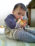 とうとう僕も、11ヶ月になったよ~~(*^^*)相変わらず、体はクニャクニャしてるけど、伝い歩きも得意になって、もうすぐ一人で歩けるようになるかも?なんて思ってるよ^^まだまだかも?だけど(~~;)最近はチーズがお気に入り♪パパのお国へ行って以来、食べ物の味をしめ、すっごいパクパクご飯を食べるようになったよ~♪お昼間はママのおっぱいなしで、過ごせることもあるくらい!!(´▽`)ヾそして、こんなポーズでも立てるようになったよ☆ミスナックカイルのつかまりたっちが懐かしい・笑。最近でもたま~~~~に、スナックのママにはなるんだけどさっ☆このサファリバスを押しながら歩くのも得意(>▽<)歩行器にも外側につかまって歩きます~~~~!危険! フレンチトーストもお気に入り♪お・い・ちぃ~~☆ いきなり話は変わるけど、今年は2月、3月、4月とママのお友達の結婚式ブーム(^^*)ってなわけで、お友達のイックンがおうちに来て余興の練習をしたよ~~~!イックンも一緒に踊ってたし!笑可愛いな~☆ ****************************************************************あと一ヶ月で、ついに一歳!!!なんだかあっというまのようで、もっともっと長い間生きてるような気もするし、不思議な気分だな~~♪この場で最初の一歩の報告が出来る日も近くなってきたような気がするよ(*^^*)楽しみに待っててね!
