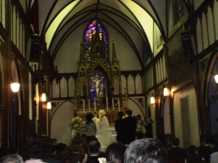 二度目の更新です♪3/18(土)にまたまたママのお友達の高校時代の結婚式に行ってきました!挙式は観光場所としてもかなり有名な教会であり、「館内での写真厳禁!」という看板が立っているにもかかわらず、パー子ぶりを発揮しまくっていたママです。 お友達は普段からと~~~っても可愛いんだけど、そんなお友達の花嫁姿は本当に女優か?と思うくらいにキレイで、ママは始まって早々涙し、「早すぎって!!!!」っとみんなに笑われちゃってたよ神聖なる結婚式の最中に普通に入ってきてた観光客のみなさん、こんなに可愛い花嫁を見れて本当にラッキーですよ本当に本当に感動ものでした!!!それから移動して、海のみえるホテルでの披露宴へここでもまたママ大号泣!笑プロフィールビデオって見たら泣いちゃいません???あぁ、この二人にもこんなに小さな頃があったのね~~~って。披露宴も、参加型でアットホームな感じで、笑いあり、涙あり、本当に素敵なものだったよ!!!そして、なんと僕も!!余興に参加してきたよ♪ママの高校時代の友達とまたまた新郎新婦のお面を被って勝手に製作した笑いあり、涙ありのビデオを流しつつ、「関白宣言」の替え歌で「円満宣言」と「さくら」をみんなで熱唱しちゃったよ~~~ん!ママのお友達の新婦さん、これで「涙」を流してくれました。このお友達は本当に友達思いでいつもお祝い事(結婚、出産等・・)がある度に中心になって、張り切って頑張ってみんなを「わぁ~~~~」って感動させてくれるんだけど、結婚式を挙げなかったパパとママのためにもサプライズでの「結婚パーティー」を開いてくれたりしたんだ(号泣)だからこそ、今度は絶対喜んでもらえるように頑張りたいって思ったんだよ♪感動してもらえたみたいで、ママたちもかなり気合をいれて頑張った甲斐がありました~~~~!そして、替え歌を一緒になって歌ってくれたおじさまたち、どうもありがとう!!新郎新婦がこれからずっとシアワセな日々を送られますように、心から願ってます☆ たくさんの感動をありがとぅ