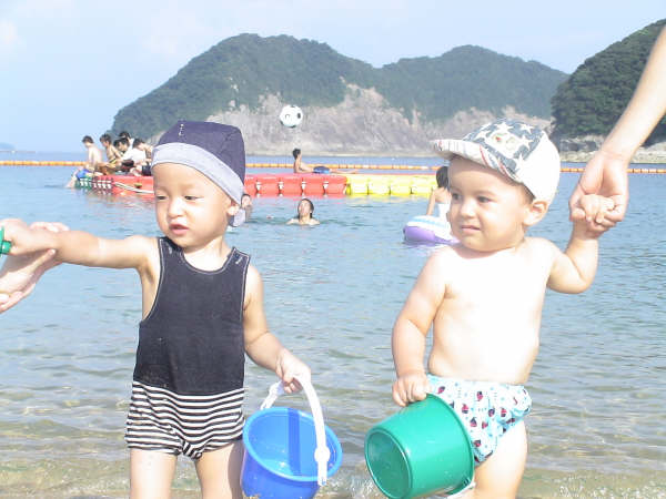 フリーページに夏の里帰り旅行の思い出UPしたので、よかったら見てね~(まだ途中までしかUPできてませんが・・・)今日は例のいつも遊びに来てくれるカイルパパのお友達&その彼女さんと鍋パーティーをしましたよやっぱり冬は鍋よね~! むかーし、一人暮らししてた頃は、冬になるといつも仕事仲間を呼んで鍋パーティーを開いてた鍋奉行な私 っていっても、材料切って鍋に入れるだけだけどね カイルパパのお友達は最近里帰りしてたので、久々に会ったカイルの成長振りにびっくりしてた。 そういえば、夏にパパのお国へ帰って以来、言葉がだいぶ出てくるようになった ママとか、ダダとかはその前にも話してたけど、向こうに行って覚えた言葉は・・・・ CAT! それから二ヶ月。今はいろんな言葉が出てきてて、結構面白い。 この前、大好きな「しまじろう」のビデオを見ていた時、一緒になって 「かーだ、げんき♪」(からだげんき、という歌ね。) ってかなり張り切って踊りながら、 歌っていた~~~~ 最初は空耳かと思ってビックリしたよ~!カイル語録 ママダダcat dog ball juicebabyyeah(「Do you ・・・?」って質問すると、かなり自信満々に「Yeah」と答える!)no,no,nomorego go go!ぃないぃない ばぁ~!どぅ(象さんね)ちー(チーズ)ここみみぉふぇしょー(おへそ!)あしブーブーどうじょ(←どうぞ)あーーんちゅバイバイはーいお~!☆ママ以外には意味不明語☆ばばーぶー(←ラブラブのこと)ば(←なぜかわからないけど、食べ物のこと)かっ(←なぜかわからないけど、抱っこのこと)じゅーす(シューズ・靴のこと!おしいっ!笑)最近ラブラブな親友あさひ君の名前も覚えたようで、電話の受話器を取っては「あ・は・ひ?」って言ったり、ビデオカメラを指差して「MORE!!あ・は・ひ」ってビデオを再生するようにねだってきます。初めて会う人によく、「子供には日本語と英語どっちで話すの?」とか聞かれるけど、そんなこと、あんまり意識していなかった。 でも今書き出してみると、殆ど日本語だったね!笑話初めの頃は英語だったんだけどなぁ?それにしても、頭の中はきっと今ゴチャゴチャだね夏の思い出写真館8月*大親友あーちゃんと海に行ってきました。今年初&最後の海。とってもきれいでいい思い出が出来たよ♪ ↑お姉さんをナンパ中!?