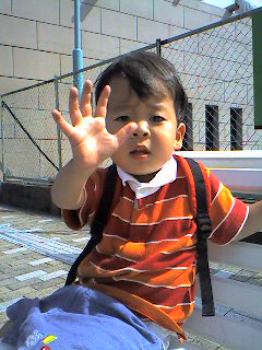 もうすぐ二歳だけど、たぶん二歳児にしては言葉はあまりしゃべれないカイル。でもちょっとずつユック~リ話せるようになってほしい気がする今日この頃。ゆっくりでいいよ~。だって中途半端なおしゃべりは、かなり面白いから!「・・・・」って言って!というと、一生懸命真似しようとして、しゃべってるんだけど、微妙に違ってて笑える最近気づいたのは「さしすせそ」が発音できないことお友達の「アサヒ君」を「アハヒ」というのは前から続いてて、今もそうだけど、昨日電話を耳にあてて、「モヒモヒ」って自信あり気に話してた!!!笑どうやら「さしすせそ」が言えず、「はひふへほ」になっちゃうらしい。***********************************************************************ちょっとずつ出てきた言葉は、殆ど日本語だけど、動物や果物の名前は英語で話す。ペットショップに行くと、「チキン!ドッグ!キャット!バーディー!!」と興奮し、叫ぶので周りの人に変な目で見られているでもね、ぞうって英語だと長いから(笑)「ぞうさん」って教えたので、それだけは曲げたくないらしく、いくら「エレファント」って言っても「ぞうさん!」「エレファントだって!」「ぞうさん!!!」「エレファントだって!」「ぞうさん!!!」って怒ってた。笑そして、この前、カイルパパがカイルに動物の名前を教えてるのを聞いてたら、カイルパパ→「ビー」カイル→「ビー」(私→お、ちゃんと真似してる!)カイルパパ→「ベアー」カイル→「ベアー」(私→うんうん、いいぞ~!)カイルパパ→「バタフライ」カイル→・・・・・・「モッタイナィ・・・」(私→が~~~~~んでも惜しいわっ!!!プッ)以前ハーフちゃんを持つ先輩お母さんに「家の中では英語か日本語かどちらかに統一してあげないと、子供の頭の中がこんがらがっちゃうよ~!」とアドバイスを受けたんだけど、(その方は家では英語オンリーだったらしい)うちはかなりのミックス。カイルが来年の今頃、宇宙語を話していませんように、祈ります。