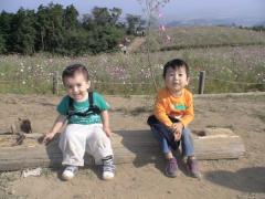 お花が大好きな私。ここ最近、コスモスを見に出かけてました~ →去年も行ったコスモスの名所。 今年も同じメンバーで。 でも今年は去年より一週間遅れて行ったので、もぅ枯れかけていて、残念!! だけど、それでもこの広大な雰囲気に満足 お友達ソウタンとのツーショット♪ 一年前はベビーカーに乗って来たのに、二人とも成長したなぁ~~~。→満開の時は息をのむほどキレイ!! (去年撮った写真♪) →翌日、近所のお友達と♪ なぜかベビーカーを押したがる二人。笑 コスモスも結構キレイに咲いていたし、スワンボートに乗って、ピクニックも出来、これまた満足♪ →一週間後また同じ公園へ♪ (よっぽど好きらしい笑) 先週よりも結構咲いていた~^^ やっぱり何度見ても飽きないわ~~~ この公園にはいろんな動物がいるんだけど、 馬を見たカイルは近づいていって、 「ボブ!!ボブ~!!!」 って一生懸命呼んでました 周りの人にかなりジロジロ見られてたよ。笑 ところで、ここ最近出掛ける度に、玄関で「あ・は・ひ?」というカイル。どうやら、「出掛ける=アサヒ君に会える」と思っているらしい!笑でもアサヒ君は二週間ママの実家に帰っているので、会えない。最初は可愛いと思ってたけど(→親バカ)最近可哀そうな位に、切ない顔をして「あ・は・ひ?」と聞いてくるようになった!!涙きっと「何で最近あはひに会えないんだろぅ~?」って思ってるんだろうな~。→これこれ、この顔です!! かなり悩ましげでしょ?笑 「あ・は・ひ?」って言ってます。ちなみに今朝なんて、寝言で「あ・ひ・ひ?あ・ひ・ひ?」って言ってたし(涙)切ないわ~~~~~。でも、アサヒ君は今日こっちに帰って来たのだきっと近い内に会えるかな♪よかったね~、カイル