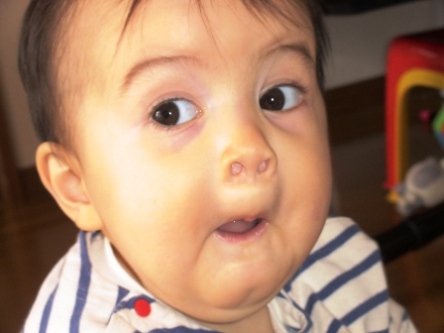 もうすぐ二歳だけど、たぶん二歳児にしては言葉はあまりしゃべれないカイル。でもちょっとずつユック~リ話せるようになってほしい気がする今日この頃。ゆっくりでいいよ~。だって中途半端なおしゃべりは、かなり面白いから!「・・・・」って言って!というと、一生懸命真似しようとして、しゃべってるんだけど、微妙に違ってて笑える最近気づいたのは「さしすせそ」が発音できないことお友達の「アサヒ君」を「アハヒ」というのは前から続いてて、今もそうだけど、昨日電話を耳にあてて、「モヒモヒ」って自信あり気に話してた!!!笑どうやら「さしすせそ」が言えず、「はひふへほ」になっちゃうらしい。***********************************************************************ちょっとずつ出てきた言葉は、殆ど日本語だけど、動物や果物の名前は英語で話す。ペットショップに行くと、「チキン!ドッグ!キャット!バーディー!!」と興奮し、叫ぶので周りの人に変な目で見られているでもね、ぞうって英語だと長いから(笑)「ぞうさん」って教えたので、それだけは曲げたくないらしく、いくら「エレファント」って言っても「ぞうさん!」「エレファントだって!」「ぞうさん!!!」「エレファントだって!」「ぞうさん!!!」って怒ってた。笑そして、この前、カイルパパがカイルに動物の名前を教えてるのを聞いてたら、カイルパパ→「ビー」カイル→「ビー」(私→お、ちゃんと真似してる!)カイルパパ→「ベアー」カイル→「ベアー」(私→うんうん、いいぞ~!)カイルパパ→「バタフライ」カイル→・・・・・・「モッタイナィ・・・」(私→が~~~~~んでも惜しいわっ!!!プッ)以前ハーフちゃんを持つ先輩お母さんに「家の中では英語か日本語か統一しないと、子供の頭がこんがらがっちゃうよ~」とアドバイスを受けたんだけど、(その方は家では英語オンリーだったらしい)うちはかなりのミックス。カイルが来年の今頃、宇宙語を話していませんように、祈ります。(私にかかってる!?)