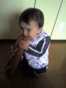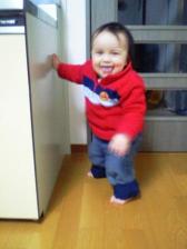 最近は「コメント書き専門」になってた僕、久しぶりに自分の日記の更新で~すところで近頃、急成長中なんです・・・・ママが・・・っというのも、僕がちょうど1歳と1ヶ月のお誕生日で☆卒乳☆して、それまでは「食べても食べても太らないよ~」って調子に乗って食べてて、卒乳してからも大きくなった胃は元に戻らず・・・体重計がタイミングよく(?)壊れてて、どのくらい太ったのはわからないらしいけど、明らかにどんどん大きくなってる!やばいって~~~~~ ↑勝手に「フランスパン」を袋から出し食べている僕**************************************************************************さてさて、「ヨボヨボ」歩きも、やっと「ヨチヨチ」歩きになってきた今日この頃♪昨日はお靴を履いて、「ヨチヨチ」歩いて、近所のお砂場に行ってきたよ~!誰もいなかったけど、ブランコに乗ったり、滑り台滑ってみたり、お砂いじりにと、結構楽しんできたよっ♪そして、その後、ママと手をつないで初めて歩いてお買い物に行ってみたよ~!!ママは僕が意外なお店に入って行こうとするのでビックリしてたよ!笑タバコ屋さんとか、洋裁屋さんとか、普段だ~れもお客さんがいないようなお店にばかり入っていこうとしたから・・・。結構渋いお店が好きなのかも!?爆いつもベビーカーに乗ってるのとは目線が違うから、あちこちウロウロして、殆ど前に進まなかったけどね~~~~~ヨチヨチ歩きまですっごい時間かかったけど、今は歩く楽しみを覚えちゃって、昨日はママが散歩されていました気持ちばっかり前に行って、こけることもあるけど、ゆっくりゆっくり上手に歩けるようになりたいな~