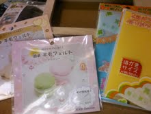 今日は朝から親子遠足で電車に乗って隣町まで行ってきました毎日の生活では電車に乗る機会がめったにないので親子でとっても楽しい経験になりました(*^_^*)ひと駅、ふた駅。。と、近くの町でも電車に揺られての移動はちょっとしたお出かけ気分になっちゃいます♪さてさて、先日わが町にもやっと100均一のセ○アがオープン(*^_^*)ネットで買おうかなあと思っていた羊毛フェルトのキットがいろいろと置いていたので早速マカロンとクッキーのキットを買ってきました♪消しゴムはんこ用の消しゴムは色つきの物が置いてあったので色違いで購入♪薄手ですが、なかなか彫りやすそう?最近は消しゴムハンコ作りをご無沙汰しているので、そろそろ何か彫ろうかなあ♪♪グリーンのマカロンを早速作って子供のネックレスに↓実はすぐに付属のニードルを折ってしまいました。。(^_^;)ニードルは予備で数本用意しておいた方が良いかも知れないですね♪100均といえば、、愛媛にはまだ1店舗もないナチュラルキッチンに行ってみたいですいつかオープンする日が来るかなあ ↓↓どんどんご参加くださいませ<(_ _)>↓↓☆☆カウプレご応募お待ちしております(*^_^*)☆☆↑各1セット計5名様※詳しい情報はこちらへ(*^_^*)サイズ色々ラッピング袋とステッカーセット(ハンドメイドのものと市販品の物も入ります)Fを2名様5m~30cm程度のサイズ色々と詰めたハギレセットGを3名様合計10名様にプレゼントいたします<(_ _)>10/26~11/5(金)までの期間中にブログのコメント欄、もしくはブログトップ左の方にございます「メッセージを送る」よりカウプレ参加をご明記の上コメントを頂けますとご応募完了です♪♪※発送の際にご住所をお伺いいたしますので、その旨ご理解いただけますようお願い致します。☆☆抽選方法☆☆応募締切の翌日、または翌々日に抽選にてプレゼントを決定致しますお得意様も初めましての皆様もどんどんご参加くださいね♪♪お待ちしておりますm(__)m☆☆本日のおススメ☆☆11/4(木)9:59まで下記ショップでのお買いものがポイント5倍に♪ ☆☆第三期の活動も残りわずかとなりました(T_T)/☆☆