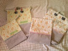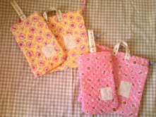 今年に入ってからはなんだか週末はいつも寒い日のような気がしますこの週末もとっても寒かったですね。あたたかい春はきっともうすぐです皆様くれぐれもお体にはお気を付けてお過ごしくださいね(#^.^#) さてさて、、今回アップする通園・通学グッズは。。レトロポップな生地を使ったトートタイプのサブバッグ2種です♪以前アップした巾着とシューズバッグと合わせると。。 3点セットの色違いになります持ち手の部分も色を合わせればよかったなあ。。(^^ゞ裏にはタグを付けました(#^.^#)↓タグと生地のアップ↓ 画像が見辛いですが綾テープのワッペンはリスのスタンプで合わせて目印代わりに♪♪30×25と一般的なレッスンバッグと比べてやや小さめサイズなのですがその分マチを10cmほど取ってあるので収納力もちゃんとあります(#^.^#)この生地で作ったグッズは全体的に小さめサイズなので園児さん&低学年さんにおススメです♪2月に楽天オークションにて出品予定です♪改めて告知させて頂きますのでどうぞ宜しくお願い致しますm(__)m ♪♪本日のおススメ♪♪生地の森(ファブリック・クロス)既に売り切れも、、タイムセールに、入園・入学にピッタリの生地も新着♪ 東京アンティーク人気スタンプが期間限定バーゲン開催中♪