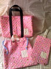 通園・通学グッズ第一弾完成しました体操服入れやお着替え入れにあると便利な大きめの巾着とシューズ入れのセットです(#^.^#) カラフルなピンクとイエローにキュートなお花柄が入ったキルト生地は子供らしい可愛さに惹かれて購入しました園児さんや低学年のお子さんが毎日元気に通えるようなイメージ♪お気に入りのチェコの動物スタンプでお名前付けもできる織テープをワンポイントとしてアップリケしたのですが携帯サイズなので見辛いですね。。(^^ゞ春から通う予定の幼稚園では体操着入れにはフックに掛けられるループを付けるのが必須との事なので巾着タイプのバッグにはループを兼ねた小さめの持ち手を付けましたまだまだ製作中なので完成次第アップ予定です(#^.^#)「この部分はこうした方がいい」「こういう風にしたら便利」などご意見やご感想など是非教えて下さいねm(__)m ↓↓ポップなカラーのレトロ柄キルティング生地たち↓↓キルティング生地は園グッズ製作の強い味方♪キッズ用にはビタミンカラーのカラフルポップな生地で作るのが好みです 楽天ショップ内で「キルティング生地」を検索♪