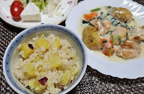昨日の夜はサツマイモご飯。薄めのお醤油とみりんとお酒で味付け。
