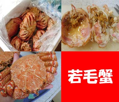 ●●●2008/7.14こんばんは マルイチ鈴木海産通販部かに小僧さんで、【活】若毛がに約3.0kg入【6~12尾入り】送料込みを【ボイル】で、購入しました!7尾入っていて、ケースから出して重さを量ってみたところ2.3kgでした。全体的に手の平サイズのチビッコイ感じで、詳しく言うと、2尾は、約400g前後くらい、5尾は、約300g前後くらいの大きさでした。うち3尾は、足折れ1本、折れた足2本は一緒に入ってました。ちなみに↑画像の手の平の蟹は一番大きいやつです。◆当店のかには「活きた状態」の重量です。 蟹はボイルすると重量が少々減ります。●若毛がに・・・約25~35%と書いてあったので、軽いのはボイルで、購入したので仕方ないかなぁ・・・味は、鮮度が良かったので、美味しかったけど、身入りは、8分もない・・・結構~スカスカ目の6分くらいでした。(泣)塩加減は結構薄め、味噌は、たっぷり入ってました。↑甲羅詰め、天ぷら、酢の物、かに汁、蟹飯にして食べました。満腹・・・・。【活】若毛がに約3.0kg入【6~12尾入り】送料込み期間中!↑今回購入したものです。水揚げ時に足がちょっと折れちゃった毛蟹身入りが約8割り程度等のご家庭用規格外品お買い得特価でご提供致します!訳ありでも美味しさと鮮度はそのまま!規格外を激安半額50%OFFセール![かにのマルマサ]蟹工場掘り出し逸品♪北海道産[規格外]活毛がに2kg詰合せ(5尾入り)↑kaoriおすすめのショップさんのです。↓楽天内その他の毛蟹