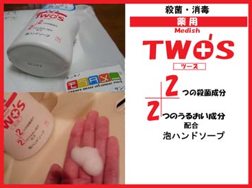 ●●●2007/10.11皆さん おはようございます。当選した物は、この前、モラタメさんで、牛乳石鹸のメディッシュ 薬用泡ハンドソープTWO'S(ツーズ)です。kaoriアライグマみたく、めっちゃ手洗いするから嬉しい当選品www でも、いつもは、普通の液体ハンドソープを使っていて、泡のハンドソープは、初めてですwwwしかも懐かしい~牛乳石鹸良い石鹸♪の牛乳石鹸さんが出してる泡ハンドソープ!!っていうことで、早速使ってみました~。1プッシュで、濃密なクリーミーな泡で、手肌全体を洗い上げてくれるらしい!!どれどれwwwwきゃはっヾ(>▽<)ゞうんうん、確かにその通りwww香りは?いい香り~♪だけどそんなに香り持続しなくてgoodかも!突っ張り、かさつきも無しwww2種類のうるおい成分を配合だからねぇ!!+2つの殺菌成分配合だから幅広い種類のばい菌から手肌を守ってくれるんだってwwwこれ自分で、泡立てなくていいし、殺菌消毒してくれるのに潤ってくれて、かさつかなくていいかも~♪人気blogランキングに参加していますぅ。ガックンと下降気味ですぅ(T▽T) これからも頑張りますのでぽちっと応援宜しくお願いしますぅぺこりっ☆↓