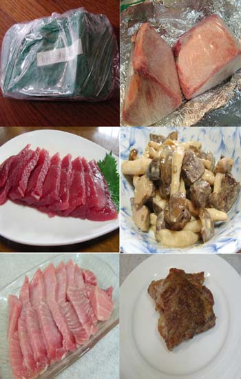 ●●●2008/7.30この間、よりの幸さんで、購入したBLACK BOXの中身2つ目をネタバレ?教えちゃいます(ノ∀\*)凄~くいいものが、入ってましたよ~♪それは、こちら↓南まぐろの中トロ360g・赤身285g計:645gです。これが、めちゃめちゃ美味しかったです。特に中トロ~解凍してカットする時に少し筋っぽいところを捨てるのが勿体無かったので塩胡椒振って焼いたけど旨旨でした。生は、勿論!!たっぷり脂が乗っていて甘みとろみ最高!赤身は、癖臭みがなく甘みがあって、もっちりとした食感でこれまた美味しかったです!赤身もカットする時に血合い部分があったのでしめじと一緒にガーリックバター炒めにしました。これも美味しかった~♪うふふっ身も解凍しても解凍やけなど無く、とても綺麗でした。しかしBLACKBOX凄いですね!はまりそうです。ではでは、そのうち後の1つの商品もupします|ω・`)ノ"|Ю |BLACK BOX \3,150よりの幸