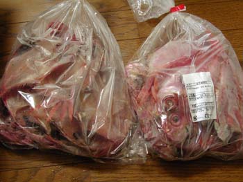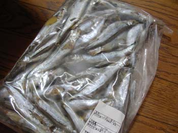 ●●●2008/6.9こんばんは ご無沙汰しております^^;この間、ハクダイ食品さんで、金目を購入した時に同梱した訳ありシシャモ1kgのupです!!↑こんな感じで、一袋にまとめて入っていたので、いつでも直ぐ食べられるように自分で、ラップで、包んで、小分け冷凍しました。凄い大量でしょwww訳ありなので、確かに頭が取れてたり、折れてたり、傷がついているものもありましたが、お味は、普通に美味しかったですよ!