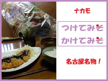 ●●●2007/10.11皆さん こんばんはぁ。この間、名古屋名物!?つけてみそかけてみそを初めて貰っちゃった♪これずっと食べてみたかったんだぁ~♪愛知県出身のお友達の話だとマヨネーズやケチャップと同じで、冷蔵庫にいつも入ってたって聞いてたし美味しいし有名だって聞いてたけど、いつも名古屋のお土産っていうと皆よくシャチホコのおもちゃorシャチホコのお菓子とかういろうとかくれてたんだけど、つけてみそかけてみそって話だけで、貰ったことなかったんだよねぇ。だから貰えて嬉しいで~~~~~す。 つけてみそかけてみそ ってなわけで、早速つけてみそかけてみそ使って、味噌チキンカツ食べてみました。うんうん(⌒┐⌒)これ甘めで、コクのあるお味噌で美味す~ぃ!!甜麺醤にもっと甘みを加えたっていうか蜂蜜足したような感じの味!!kaori好きな味かも!!おでんにもつけて食べてみたい~www他にも和え物、サラダ、炒め物、和食、中華とかにも使えそうな味だよ!!チューブに入っているから使いやすくて便利だし関東でも売ってたらいいのになぁ!!通販は、やってるみたいだよ→ナカモ株式会社HP人気blogランキングに参加していますぅ。ガックンと下降気味ですぅ(T▽T) これからも頑張りますのでぽちっと応援宜しくお願いしますぅぺこりっ☆↓ 楽天内も売ってたよ!!つけてみそかけてみそ