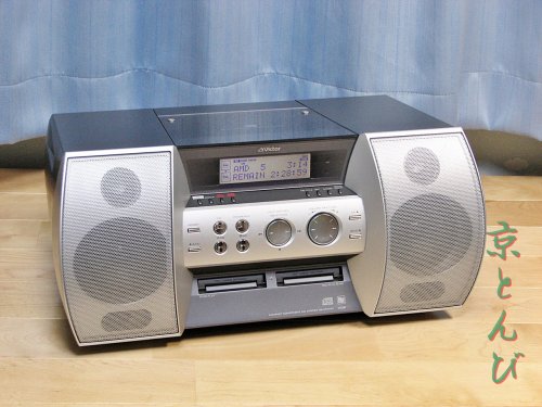 今回の修理は、「Victor NS-X7WMD ダブルMDラジカセ(発売日:2002/2/15)」だ。MDデッキを2台搭載し、MDからMDへのダビングが可能な一台だ。 スピーカー保護がパンチングメタル製のものは希少だ。[Victor NS-X7WMD ダブルMDラジカセ] ■主な故障と原因 CD再生時に擦れ音発生 → 防振ゴムのヘタリMD再録不可 → MD光ピックアップの劣化表示部バックライト不点灯 → LED故障■修理 分解・組み立てし易く、メンテナンス性は良好だ。 MD-A(再生)とMD-B(録音・再生)。MD光ピックアップ(SONY KMS-260E)と録音磁気ヘッドは両者で共有しており、ダビング時にはAとBを往復しながら録音をする仕組みになっている。 MD光ピックアップは、劣化が顕著だったために交換した。 ATRAC ICは、「Panasonic MN66621BRG」をMD-A用とMD-B用の2個搭載している。 ビクター(JVC)のMD搭載のラジカセ(コンボボックス)タイプの機種は、サービスマニュアルがほとんど入手できないため、思うように修理ができないのが残念なところだ。 今回は、他のミニコンポとMDユニットが同一と確認できたので、 MDユニットごとこのミニコンポに移し変え、調整を実施した。 さて、CD再生時の擦り音は、防振ゴムが劣化で経たり、スタビライザーにCDをチャッキングできないことが原因と判明。 防振ゴムを交換し、自作フェルトの下駄を履かせ、高さを調整して補修した。 表示部バックライト不点灯は、LEDの故障が原因。標準でデモ機能が動作するため、常時LEDが転倒している使用であることがLEDの劣化を早めたと思われる。LEDの明るさと色合いを調整・交換して修理。 その他各部のクリーニング、組戻し、点検。動作確認と修理後のエージングを実施し、作業完了。 --- 分解清掃修理した や や を出品中 --- ★京とんびの『もったいない』オークション★ ♪ あの頃の懐かしい や や を もう一度 てみませんか 音楽と一緒に 懐かしい思い出が甦ります ♪ ☆ラジカセ修理・ミニコンポ修理の相談は、ここをクリック!☆