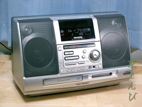 今回の修理は、 「AIWA CSD-MD50 MDラジカセ(発売日:1999年9月)」だ。CD/MD/TAPE/FM/AMを搭載した直立タイプのオールインワンラジカセだ。 [AIWA CSD-MD50 MDラジカセ] ■主な故障と原因 CD再生不可 → CD光ピックアップの劣化故障■修理 筐体は前後に分割されている。 CD光ピックアップは、「SONY KSS-213F」だ。防塵用のレンズシャッターが特徴のピックアップで、この頃のアイワのミニコンポやラジカセには、これが使用されていた。CD光ピックアップの発光がない。交換して復旧。 電源以外の部品類は、全て前面側の筐体に取り付けられている。 スピーカーはアイワ製。フルレンジとツイーターを計4ユニット搭載。 MD光ピックアップは、「SONY KMS-260B」。 ATRAC ICは、「SONY CXD2652AR」。 その他各部のクリーニング、組戻し、点検。動作確認と修理後のエージングを実施し、作業完了。 --- 分解清掃修理した や や を出品中 --- ★京とんびの『もったいない』オークション★ ♪ あの頃の懐かしい や や を もう一度 てみませんか 音楽と一緒に 懐かしい思い出が甦ります ♪
