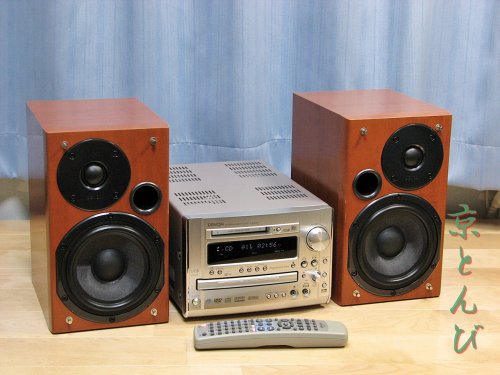 今回の修理は、「Victor UX-MD1 マイクロコンポーネントMDシステム(多分1997年製)」だ。小型ながら高音質を目指した製品で、ウーファーを前面と背面の計2ユニット搭載した1台だ。特徴あるスピーカーは、それ単体でも愛好家に人気があるようだ。[修理の完了したVictor UX-MD1 マイクロコンポーネントMDシステム] [ダブルウーファーで特徴のあるスピーカーSP-UXMD1 ] 実はこの機種、どうしても原因不明で修理できず、1年ほど寝かせていたものだ。先日、同機種が入手できたので、比較しながら再修理に挑戦することにした。 ■主な故障状況◎1号機液晶不表示(ユニット直付けフレキシブルフラットケーブルの破損)MD録音不可(原因不明→光ケーブル未接続)◎2号機 CD再生不可(レンズ汚れ、レーザー出力低下)MD再録不可(レンズ/磁気ヘッド汚れ、レーザー出力低下→MDピックアップ寿命でNG)電源投入直後に電源が落ちる(CD制御基盤NG) 故障状況と原因を切り分けた。 1号機でMDに録音できない原因が、光ケーブル未接続であることが判明。原因は、分かってしまう「なんだ」と言うことが多い(くそぅ、悔しいぞ!)。 2号機で電源が落ちてしまう原因は、CD制御基盤にあるとことを特定。また、MD再録不可の原因は、 クリーニング/調整するも動作が安定しないので、MDピックアップ寿命と判断。 以上より、程度の良い1号機に良部品を片寄せし、稼動品1セット仕上げることにした。 [北村機電の高効率な変圧器「Rコアトランス(R50サイズ)」] 高音質志向なだけあり、高価なRコアトランスが使われていた。このトランスだけで2kgはありそうだ。 [CDユニット(ピックアップ型番はOPT-8 OPTIMA-6(2018/11/28訂正))] [オーバーホール中のMDユニット(結局、寿命でNG)] MDのカートリッジ取り込み機構は、CDのそれと同じだった。初めて見た。 [MD光ピックアップ裏面(KMS-194E)][スピーカー背面にあるウーファー(ガードを外した所)] スピーカー背面のウーファーの状態を確認するため、プラスチック製のスピーカーガードをはずす。接着剤で固定されているため、慎重に外す。 陽の当たる窓際にでも置かれていたのだろうか、コーン紙が若干退色し、エッジ表面の数箇所に浅いひび割れが認められた。音には影響ない程度だ。クリーニングし、保護剤を塗布した。[背面ウーファースピーカーユニットの裏面] スピーカー前面には「DYNAMIC AXIAL-DRIVE WOODFER SYSTEM」と書かれている。前面と背面のウーファーは、ボイスコイルの中心軸が一直線上になるよう設計されており、金属製のシャフトでそれを確保すると言う手の込んだ構造だった。 エンクロージャー内部は吸音材が設置されている。また、前面と背面は隔壁があり、互いの音波による共振や減衰が抑制される構造となっていた。 と、一通り内部構造を確認しながら片寄を完了した。動作確認したところ、LINE OUTが不安定だった。どうやら接触不良のようだ。 原因は半田クラックだった。目視では確認できない半田クラックも多い。半田付けをし直し、修理作業を完了した。--- 分解清掃&修理したラジカセやコンポを出品中 --- ★京とんびの『もったいない』オークション★あの頃のカセットやCDを もう一度ラジカセで、コンポで聞く 懐かしい音楽とともに 過ぎし日々が甦る ♪~(-_-).o○