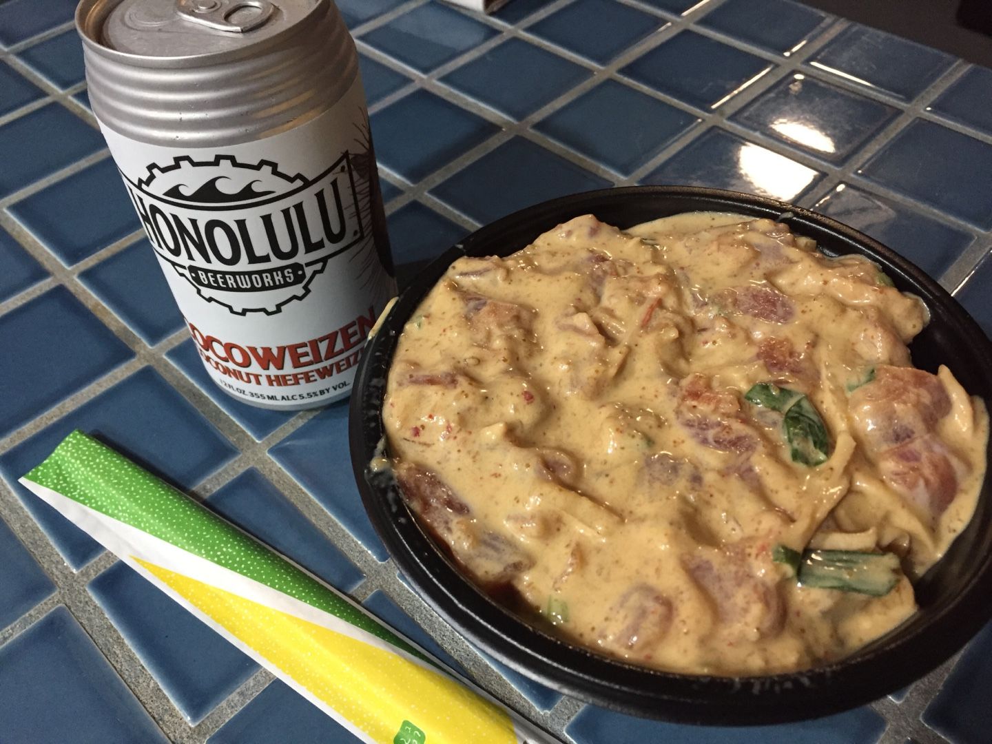 美味しいと噂の coco coveのポケ丼と ハワイのビール🍺 ポケ丼は気になる2種を 味見させてもらって 普通の醤油も美味しかったけど 今日はこってり系 アボカド入にしました🕺 マグロが美味しい〜! なんでハワイのは こんなに モチモチでスジがないのかなー💕 玄米を選び ふりかけもかけてもらったけど これいらないね😅 濃いめの味付けなのに さらに 塩みが強くなってしまった… のりの風味は良かったけどね👍 しっかりした味付けだったので こりゃビールだ🍺と 気になったこのビールに挑戦! $3位 よくわからんけど… ドイツのエールに ハワイのココナッツ🥥をプラスしたもよう… 普通に美味しかったです✨ あっさりとして そんなにココナッツ🥥は わからなかった。 ポケは本当にウマッで リピしたい感じやけど 量が多くて 半分しか食べられず 勿体ないからもう買えないな🙃 因みに$7.99 ハワイではとってもお安い方です 明日は何食べようかな😃