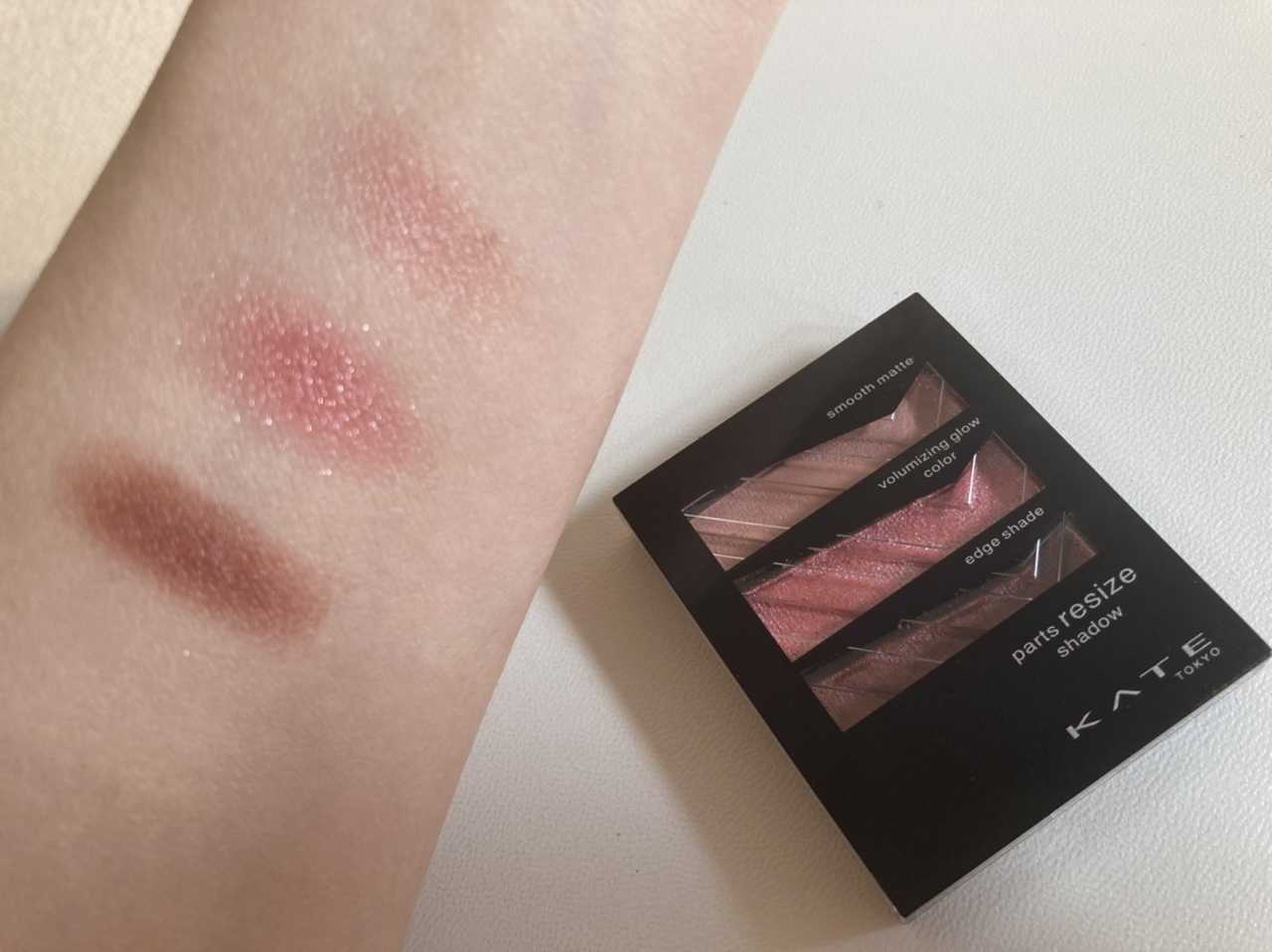 先日のRAXYに入っていたケイトのアイシャドウを使って見ました💃パーツリサイズシャドウのRD-1ですお色がとっても綺麗で発色も良く、使いやすかったです真ん中の血色ラメラメ赤ピンクが特に美しい✨下瞼に広めに入れると色っぽく、確かにほおが狭まりリサイズや🕺締め色のブラウンもお洒落な赤みブラウンでいい感じ❣️ベースになるピンクベージュはマットに見えるけど塗るとツヤツヤで不思議…でも肌馴染みの良いお色🙆♀️初めてケイトのシャドウを使ってみましたがなかなか良かったです小さい中にチップもありいい感じでまとまっているので持ち歩きにいいねーこんな感じーシミ酷いね😆特にお色が好きやった💕