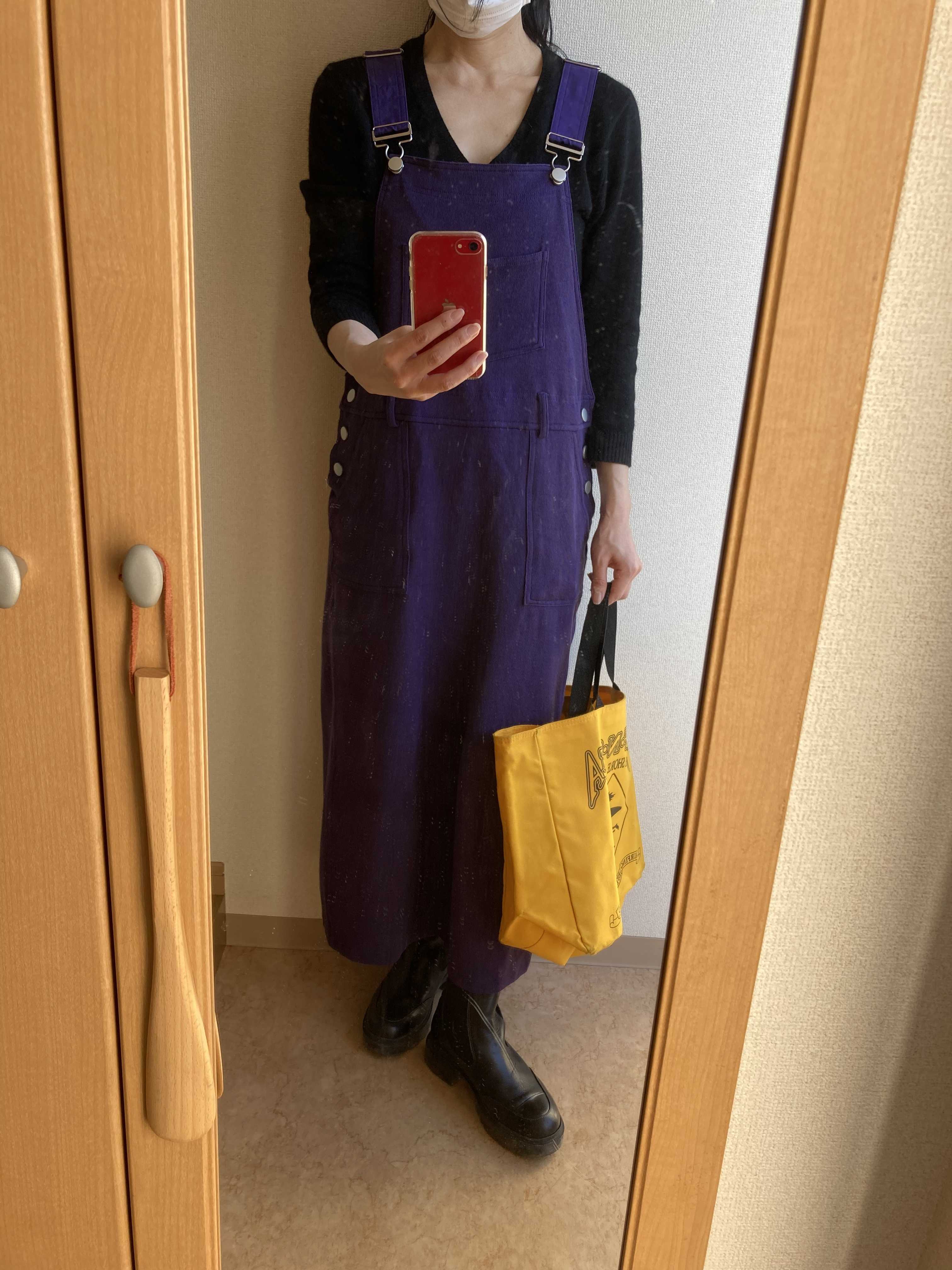 紫のジャンパースカート💕子供っぽくもならず楽だしいい感じお天気も良いのでご近所へプラプラと買い出しへ行ってきまーす🙂
