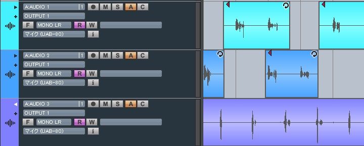 AUDIO2は、部分的に録り直したときの、テイク2。