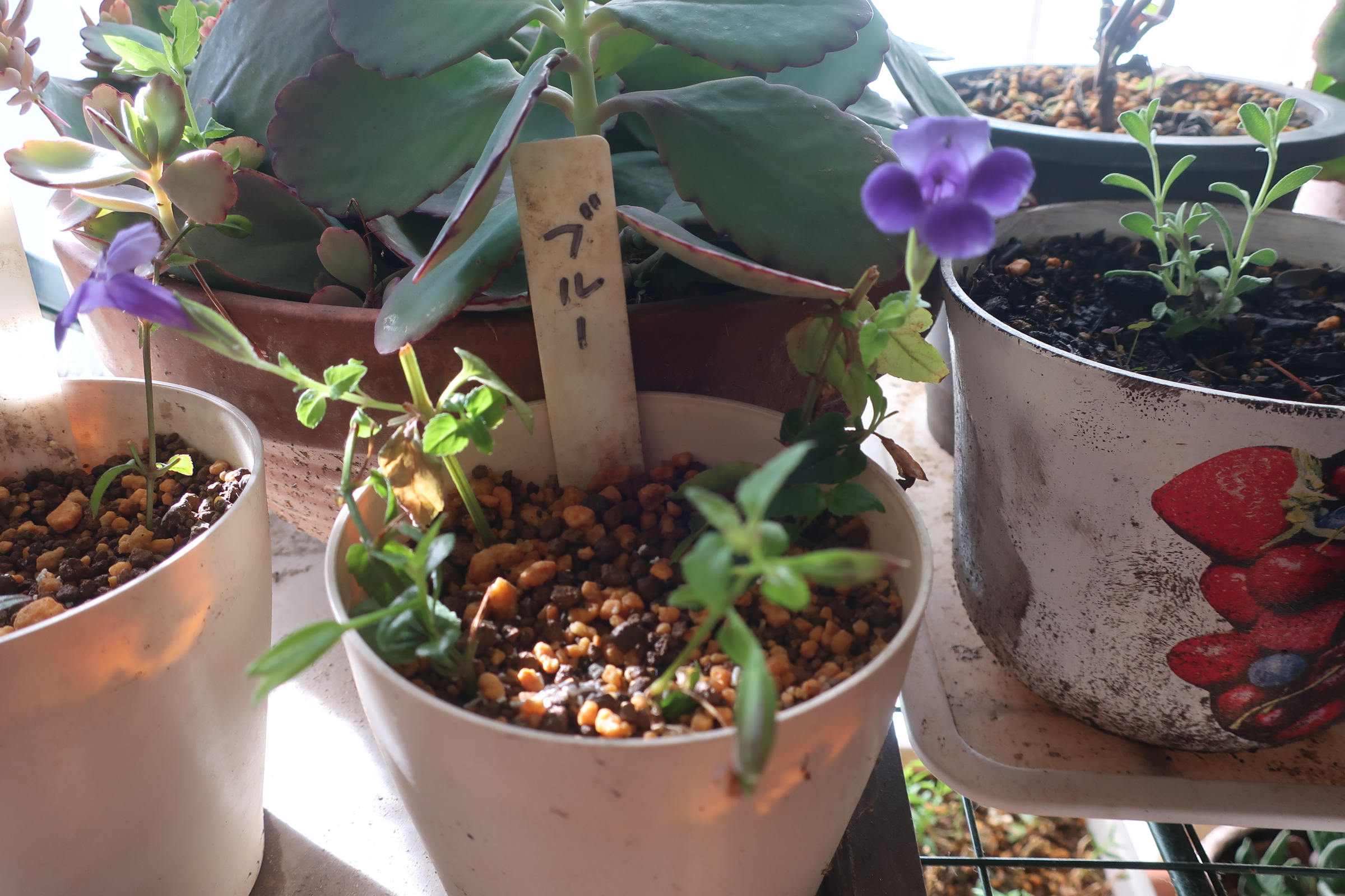 いやぁ~寒い。ここのところ毎日毎日、氷点下の朝から始まっている当地方。(今朝はマイナス7度) 強い寒気が居座っているとかで、昼間も一桁止まりで寒いったらない。🥶そんな中、ガソリンや灯油の補助金が打ち切られるから、これから徐々に値段が上がるらしい。当地のガソリン代は日本一高いと言われていて、今月の頭で182円だった(セルフでよ〜)のが、補助金が打ち切られると200円に迫るらしい。😱電気代も上がるとかで、これから寒さがさらに増すのに、凍えちゃうよ〜。😭電気代の補助とかガソリン代(と共に灯油代)の補助は冬にやってくれよ!!と、寒冷地の声は届かないのかなぁ〜。😥😮💨出来るだけ家族全員同じ部屋にいて、少しでも暖房費を抑えるしかないね〜。 さっさと順番にお風呂に入って、追い焚きの時間も節約しなきゃねぇ〜。😣世知辛い、落ち込むニュースばかりじゃなんだと思っていたら、寝室組のミニハウスで挿し穂のスーパートレニアカタリーナ・ブルーリバーが咲いた。😳健気だねぇ〜。😅2、3ヶ月は寒さが続くけど、ちょっと我慢してね。 春になればモリモリになれるからねぇ〜。💕そう、私はこんな所に住んでいる!(笑)