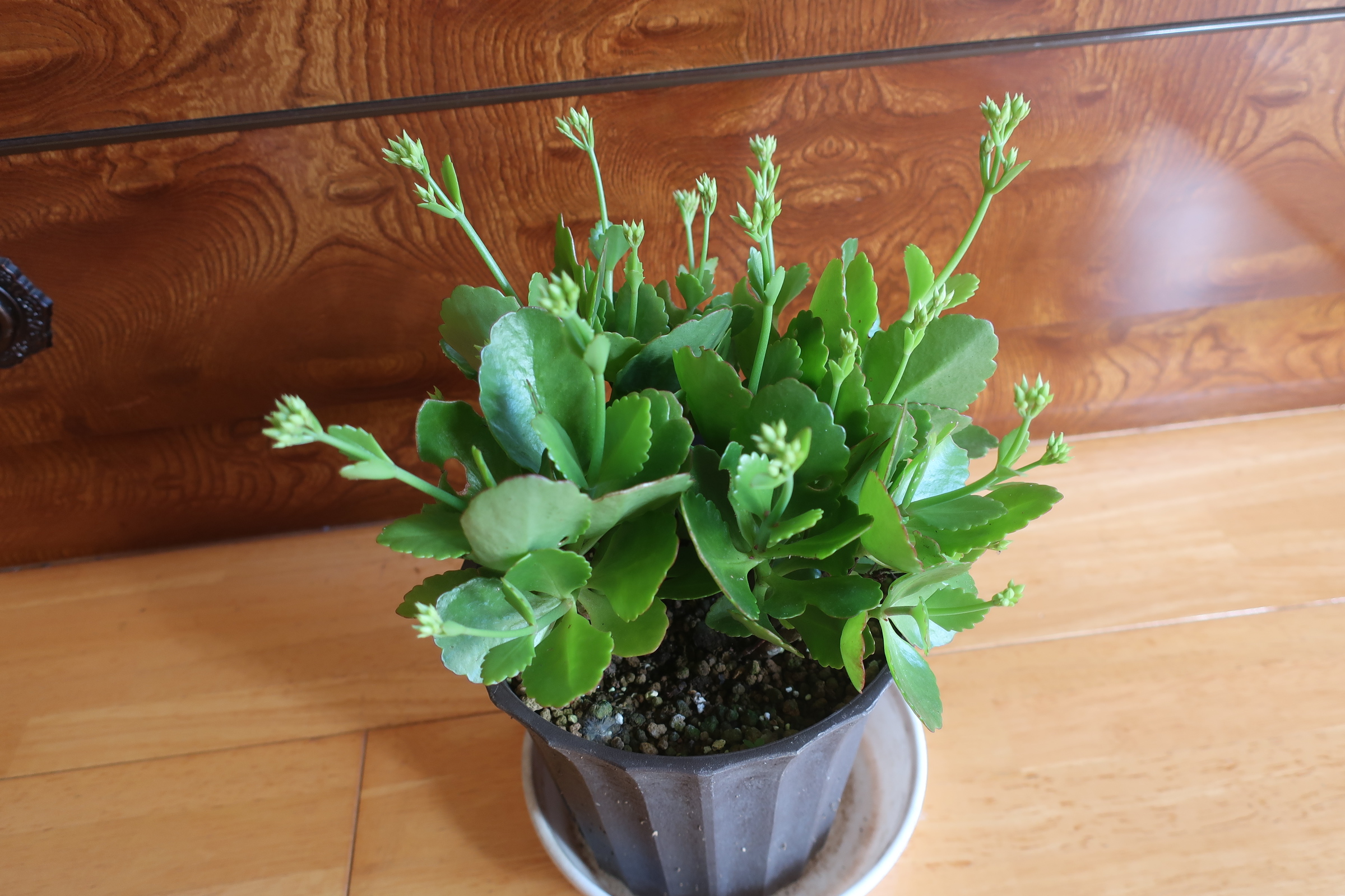 2年前の春、長男が転勤のときに頂いた餞別のお花たち。暑さに弱いリーガースベゴニアは夏に溶けたが、地植え出来るヒメウツギは地植えにして元気でいる。その他に、オレンジのラナンキュラスとオレンジのカランコエがあったが、ラナンキュラスは何とか繋げている。カランコエは去年の冬までに大株になったが、大株になり過ぎてこの春には根元が木質化してしまった。なんだか見てくれが悪いので、挿し穂にして更新してみた。5号鉢に挿し穂をして秋までは外に放置し、寒くなってから家に入れたら、それが短日処理をしたことになったらしく蕾が着いた。去年は廊下組で一部凍みさせてしまったから、今年はここからリビング組に昇格。株は随分小さくなったけど、キレイに咲いてほしいなぁ〜。😄💕
