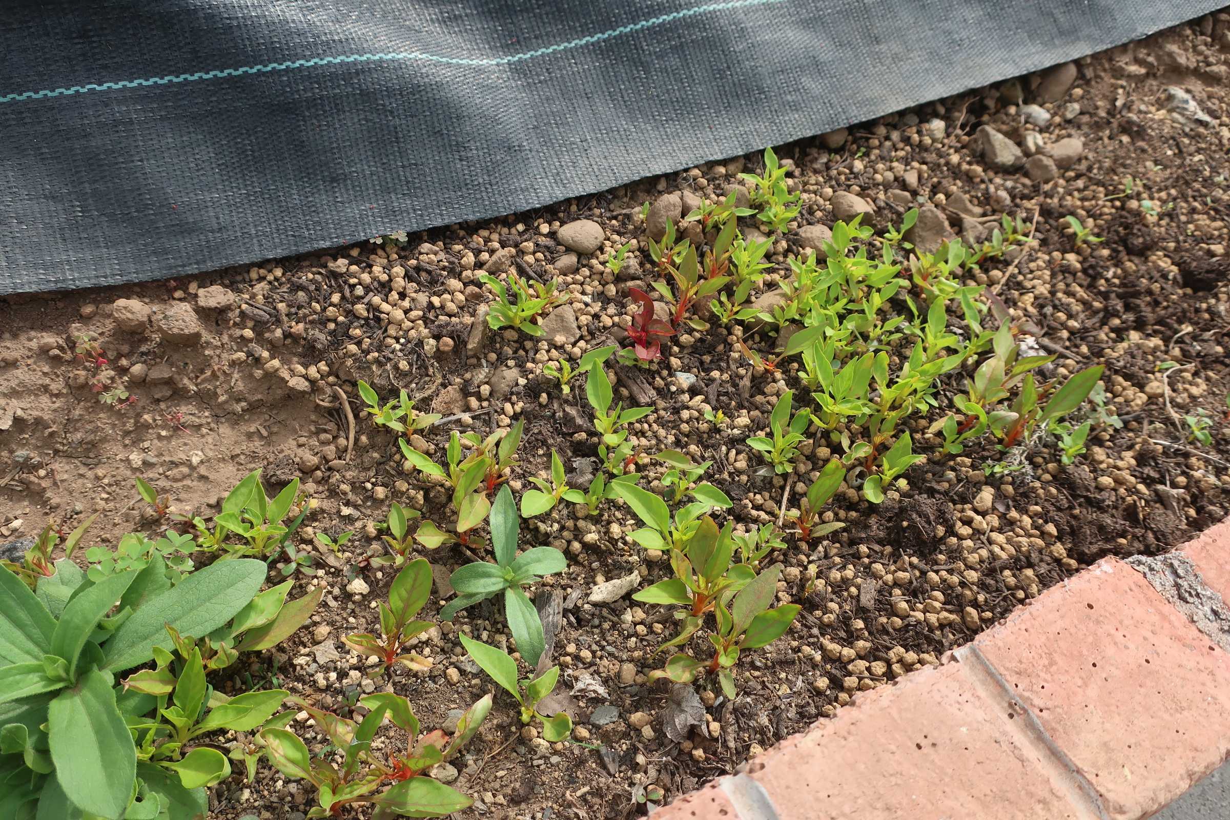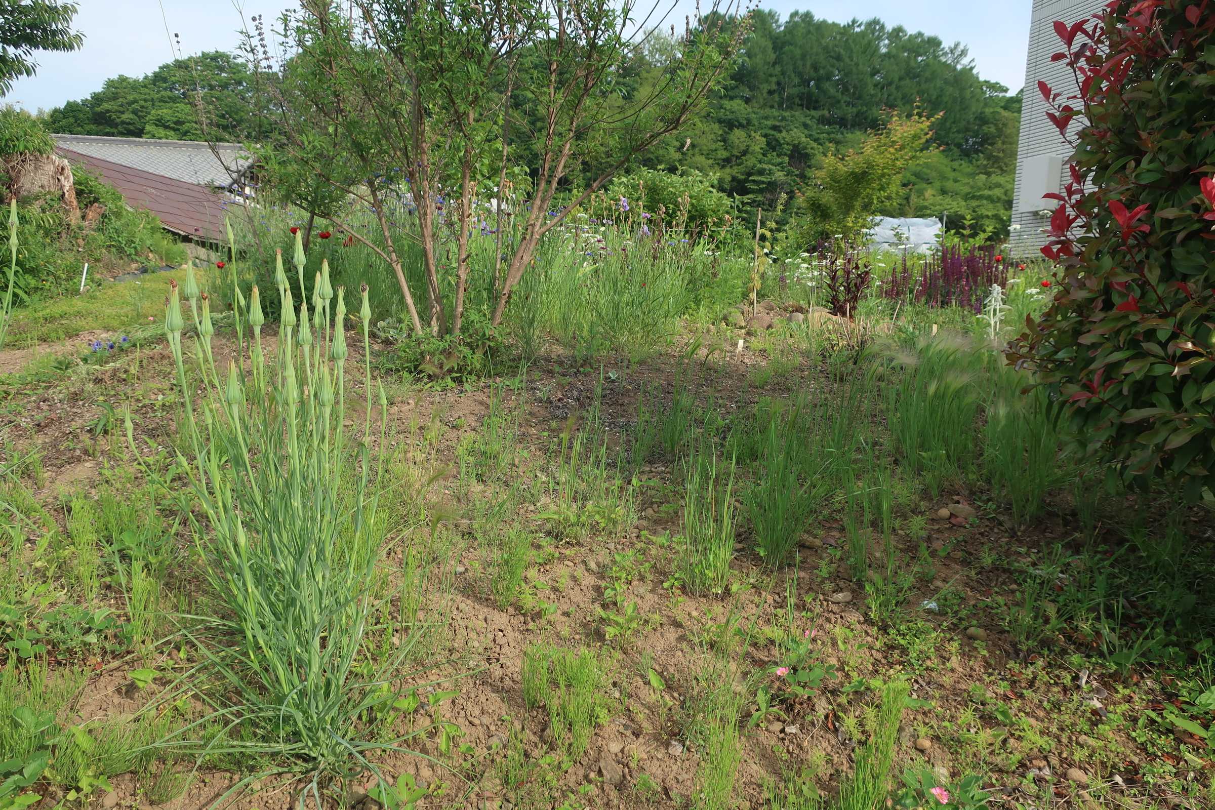 今日のメドウガーデン。道路から見たところ。バラモンジンもそろそろ終わりだから、全部が種にならないうちに抜かなきゃ。代わりに、穂を揺らし始めたジュバタム。 今年は少し少な目。ロシアンセージとサルビア・ネモローサ(零れ種でピンクになった株)白いオルラヤは、今が満開。奥にあった赤いレディ・バードは・・・。種が落ちすぎて来年無法地帯にならないように、ダンナが抜いた。 もちろん種にする分は残してあるよ。左奥のヤグルマギクと中央のジャーマンアイリスは、もう少ししたら抜いたり切ったりするつもり。一年草は華やかでいい。後始末をちゃんとすれば、来年も華やかに咲いてくれるはずだ。🤗去年買った、アルセア ピーチズドリーム。春に何も無くなっていたから、枯れたと思って諦めていたら、葉っぱが出てきてる!やったね! ずっと宿根してくれるといいなぁ~。😍