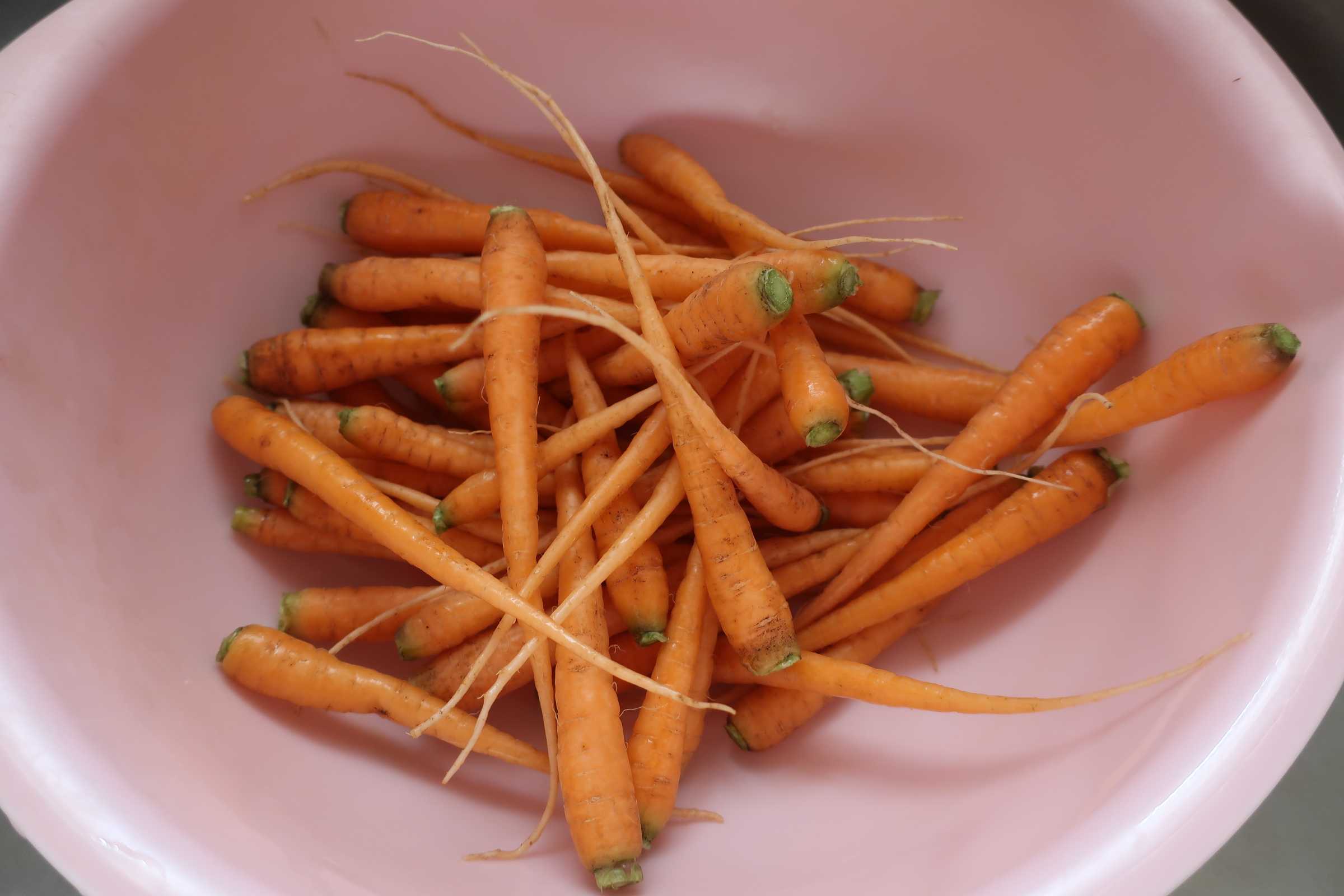 ドゥゥワァ〜というか、グギギャァ〜という暑さ。🥵🥵🥵 なんじゃそりゃ。(笑)昨日も暑かったんだけど、それを上回る今日の暑さは、猛暑日を記録した。 もう、ギランギランの太陽よ。☀️☀️☀️それでも午前中の早い時間は畑に出て、ニンジンの間引きをした。今年はいい感じに育っているニンジン。 間引いたニンジンはよく洗って、今日の豚汁に使おう。 暑いのに豚汁かい?🤣わが家の3人が、誰も文句無く食べるのが豚汁なんだよね〜。😝😁葉っぱを切り落とし、土を洗い流した間引きのニンジン。(うちの家族は、葉っぱは嫌いで食べれない💦)一番太いところで、人差し指くらい。 およそ50本くらいかな?間引いた残りは80本くらい。すくすく育ってくれるといいな。🤭明日も全国的に、各地で猛暑日になるらしい。何よりも体調第一! 熱中症になんかなったら、気持ち悪くて頭が痛くて、意識朦朧になってお医者に担ぎ込まれて、痛い思いをして医療費がかかるのよ。 バカバカしいでしょ。🤔皆さん、気をつけましょうね。😉