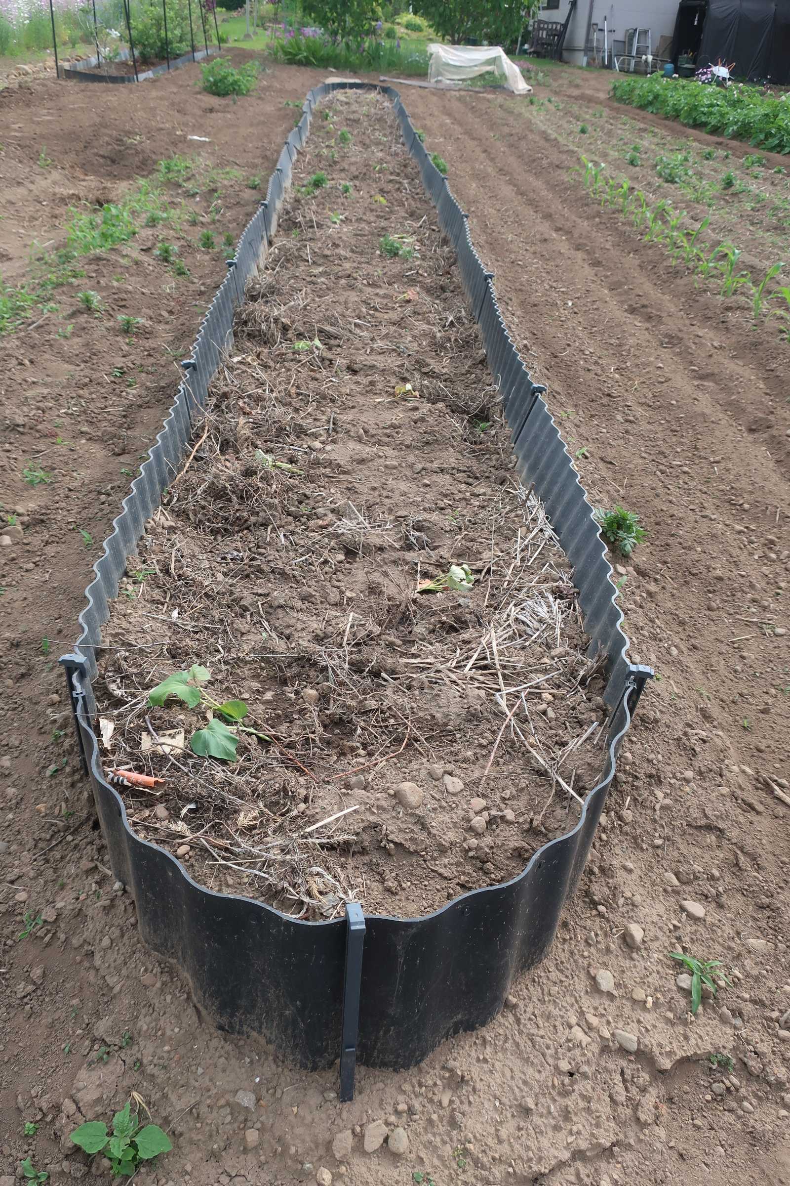 梅雨入り前に是非、どうしてもやらなきゃいけないことが・・。とっくに植えても良かったんだけど、お天気と相談しているうちに、伸び伸びになってたサツマイモの植え付け。またまたビフォーが無いが・・。(笑)いきなりアフター。なんだい、草かい?と思うくらいだけど、ちゃんと植えたのよ。高畝にして、マルチはしない。去年からの草堆肥や藁を積んで、余計な肥料は入れない。 今年は3品種25本を植えた。 中腰の作業は腰に堪える。💦どーか焼き芋サイズがたくさん採れますように。🙏子供達、孫達が楽しみにしているトウモロコシ。 いい感じに育っている。ジャガイモの花が咲きだした。 品種によって、花の色が違う。これは「とうや」の花。こちらは「デストロイヤー」の花。どちらも伏せ込んだ種芋全部、満遍なく育っている。これも、いいサイズで採れるといいなぁと思う。😄