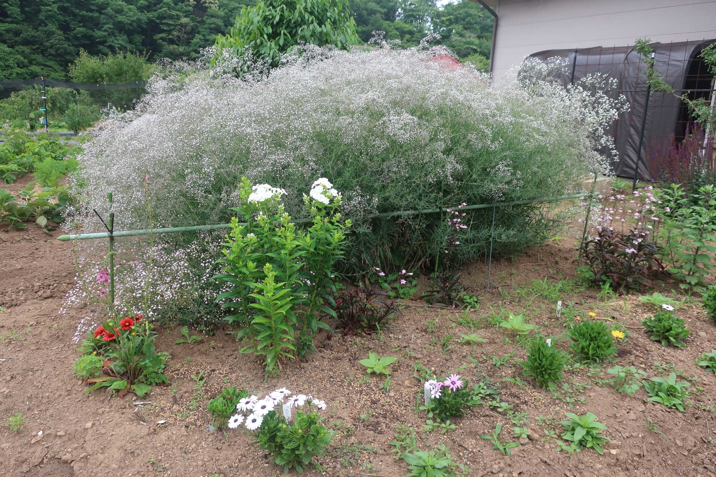 天気予報では今日は雨。 それも所によっては警報級の雨になるとのこと。雨で倒れやすいカスミソウ。 泥で汚れないうちにと、朝方写真を撮っておいた。相変わらず雑草まみれなので、そこは目を瞑って見てね。😉家の裏手に作った花壇。息子家の駐車場から畑が丸見えなので、道路からの目隠しにね。 ここのフロックス・ジェイドは、他のフロックスより早く咲く。 今年で2年目の株立ち。このオステオスペルマムは挿し穂のじゃないの。 何と零れ種から1本だけ生えてきたの。 (1枚目の写真の、他のオステオは挿し穂)ピンクのカスミソウは立ち上がらず、這うように咲く。 赤いのはガイラルディア・アリゾナレッドシェード。奥に細かく見えるのは一重咲きのカスミソウ、手前に大きく見えるのは八重咲きのカスミソウ。雨が降ったら倒れて、泥だらけになると思ったので、ひとかたまりカットしてきた。ピンクのカスミソウとバラも。こんな時の天気予報は当たる。降ったり止んだりと思っていたら、昼からは土砂降り。 隣の小諸市では停電、上田市には大雨警報が出た。😱💦夕方にはいったん止んだけど、案の定あっちもこっちもゲッチョゲチョ。カスミソウはキレイなところをカットして、正解だったな。✌️