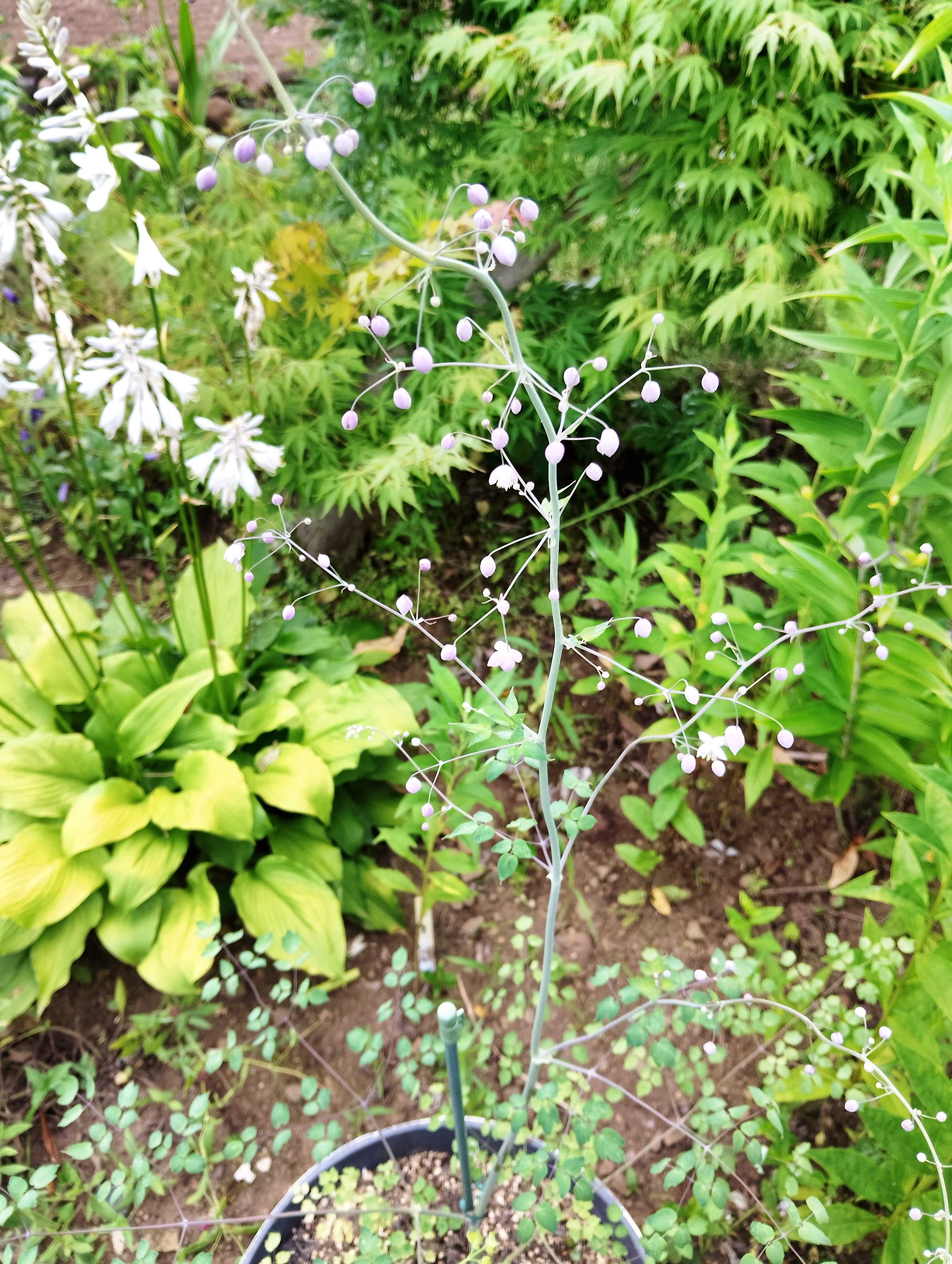 月曜日にジャガイモを掘っておいて、本当に良かった。 火曜日〜水曜日とザンザンでもないが結構な量の雨が降った。予定通り水曜日にやって来た妹と娘は、自分で掘れないのを残念がってはいたが、ジャガイモの他にタマネギまでゲットして木曜日に帰って行った。😆楽しみは来るまでで、帰っちゃうと寂しいね。😮💨ところで、バラと宿根草のお庭でステキなブログさんがあって、「あれイイなぁ〜」と思っていたのが、タリクトラム・デラバイ。おぎはら植物園さんにあるのは知ってたんだけど、いつもタイミングが悪く手に入らなかった。今年の春にようやくゲットして、ついにわが家で咲いてくれたよ〜。蕾は丸っこい。😍パッカ〜ンと開いた、花はこんな感じ。和名はカラマツソウというらしい。ずっと欲しかったから、私の庭に咲いてくれてとても嬉しい。💕