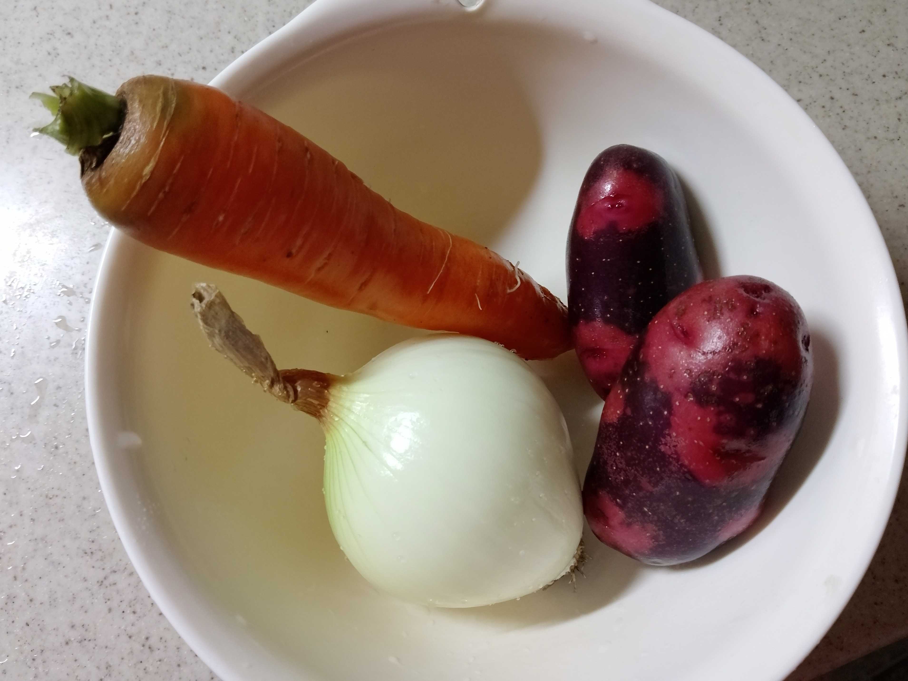 今日は朝早くから、ジャガイモ掘りをした。今年は「とうや」と「デストロイヤー」という2種類のジャガイモを作ったから、畝が2本あって去年より時間がかかった。💦よりによって今日は猛暑日。😱ジャガイモは日に当たると青くなって食べられなくなるから、掘ったジャガイモはコンテナに入れて、風通しが良くて日が当たらない場所に保存する。ダンナと2人がかりで、全部終わったところで11時。 下着までビッショリ汗をかいた。🥵お昼を食べたあと私は1時間も爆睡、ダンナは脚が痙ったと大騒ぎ。なかなか骨の折れる仕事だったよ。😮💨😂せっかくジャガイモを掘ったことだし、タマネギもあるし、草臥れて手の込んだ物は作れないし(草臥れてなくても作れないが・・)今夜はカレーだぁ~。(笑)ところが冷蔵庫にニンジンが無い!😱畑に見に行くと、1本だけ良さそうなニンジンが!😍はい! 材料の野菜は、全部わが家産。電気圧力鍋で仕込んで、美味しくいただきま〜す。😋そうそう、我ママさんのブログで、ジャガイモを皮ごと冷凍して、それを水に着けるとあら不思議! 皮がペロリと剥けると知って、先日やってみた。(今日は掘りたてだから間に合わなかった😝)ホントにペロリと剥けたよ! 凄〜い!😳その時はポテトサラダを作ったんだけど、冷凍した生のジャガイモをチンしてマッシュしても、何の違和感もなかった。✌️冷凍するのを忘れなければ、皮むきが楽ちんかもよ〜。🤗😆
