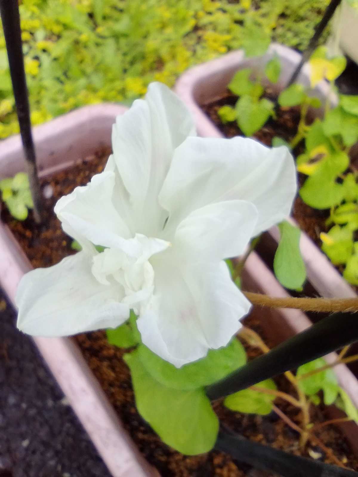 今年は黒ポットに、10種類の種を蒔いた。 (プランター等に直蒔きにしたのは除く)何だかんだで、全種類芽吹いた。 まだ咲いていないのもあるんだけどね。😝😮💨ポット10個も蒔いたのに、1つしか育たなかったコレが、やっと咲いた。ド田舎にはあまり出回らない、黄色いトレニアの種を見つけたから、蒔いてみたんだけどトレニアって難しい。💦カウアイ・レモンドロップ。まだ夏は長そうだから、これからモリモリに咲いてくれそう。 暑さを喜ぶなんて・・。(笑)毎日毎日、異常な暑さ。🥵雲一つ無い青空に、ウンザリしてきた。😵庭だけでなく、畑にも水やりをする日が続いている。 水やりだけで2時間近くかかり、草取りまで手が回らない。😫もういいや!と、開き直っている。😂