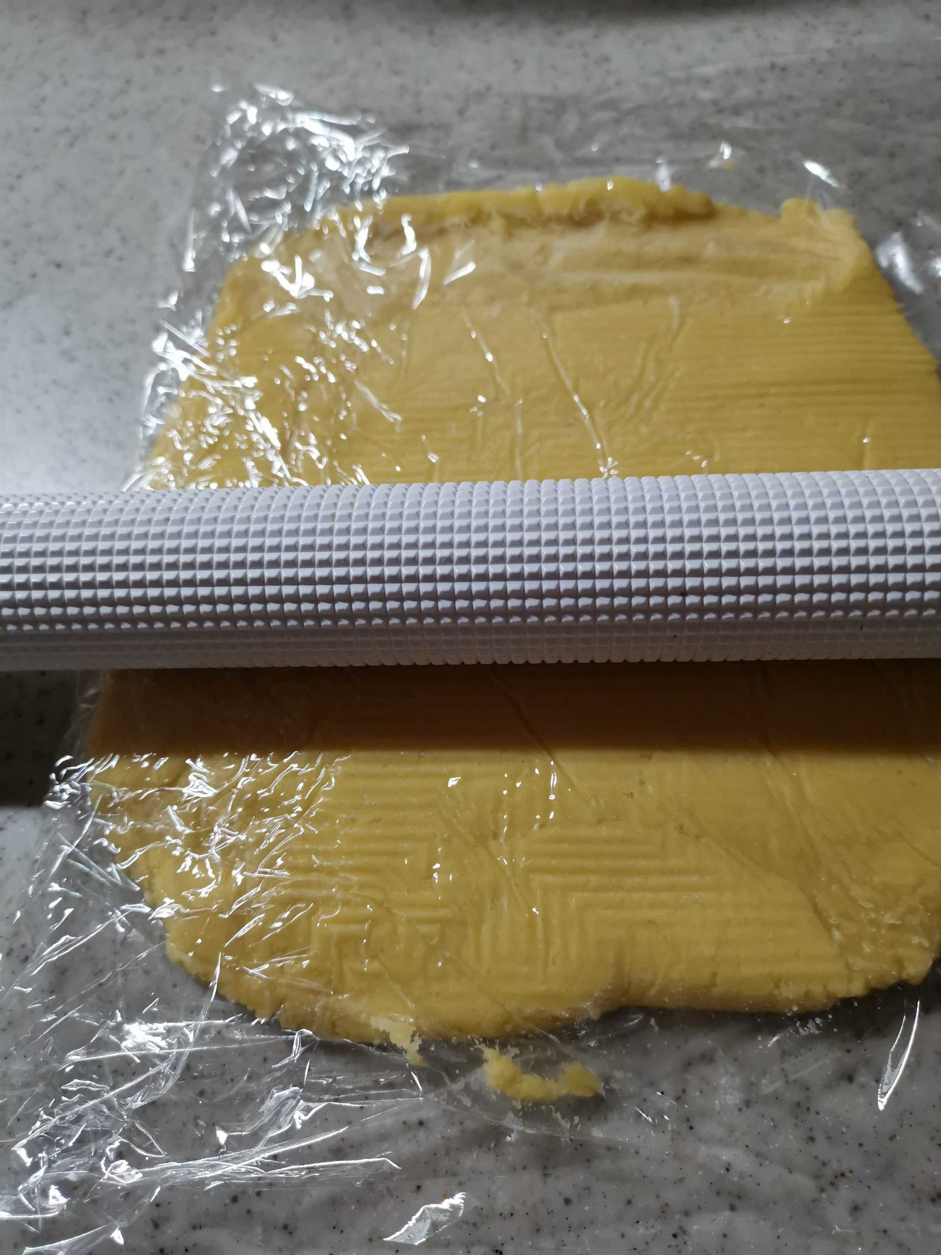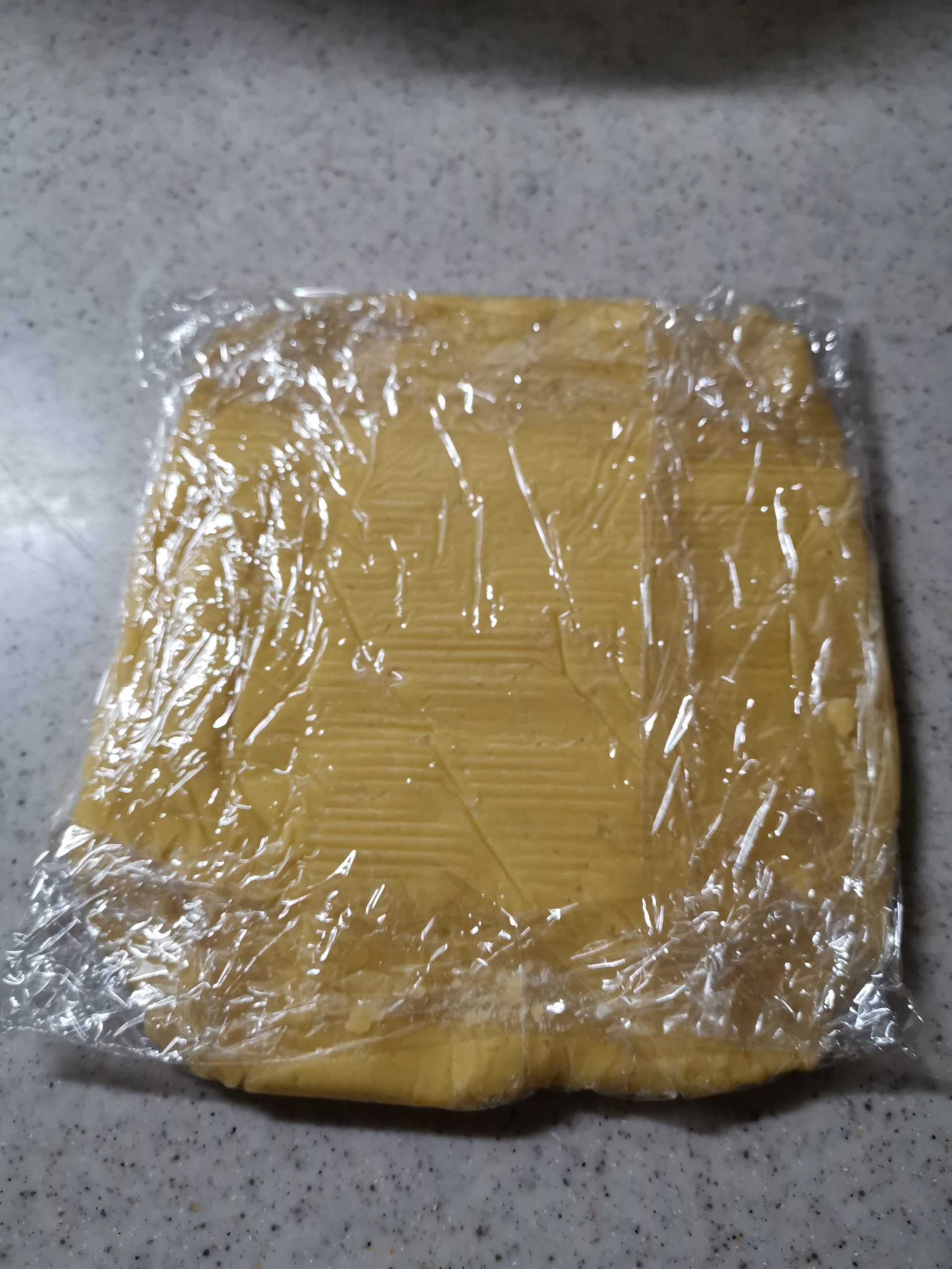 これをラップ又はシートに乗せ、その上からまたラップをかぶせ、1センチ位の厚さに伸ばします。
