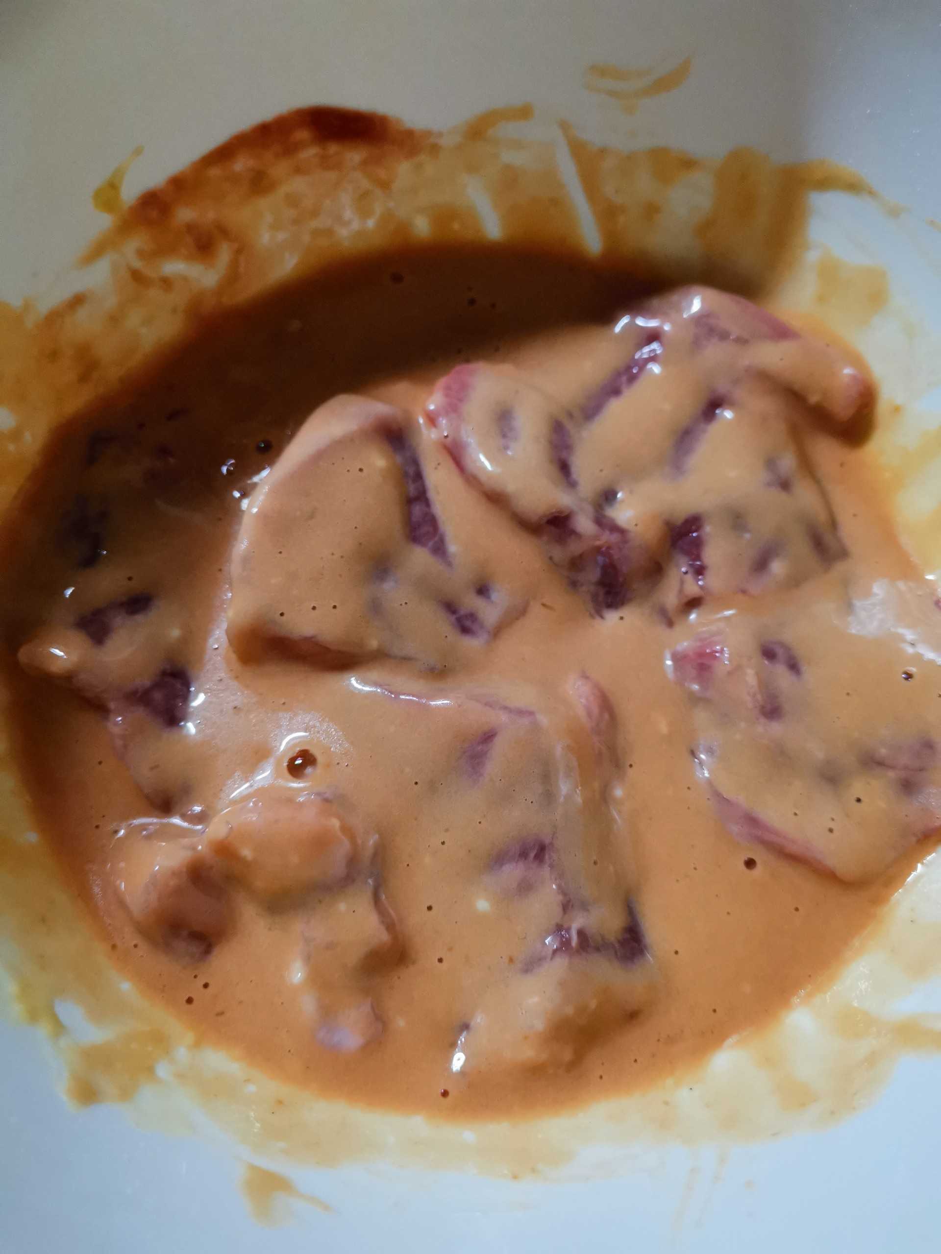 豚ヒレ肉を浸します。(30分くらいつけておきます。この為のケチャップ)