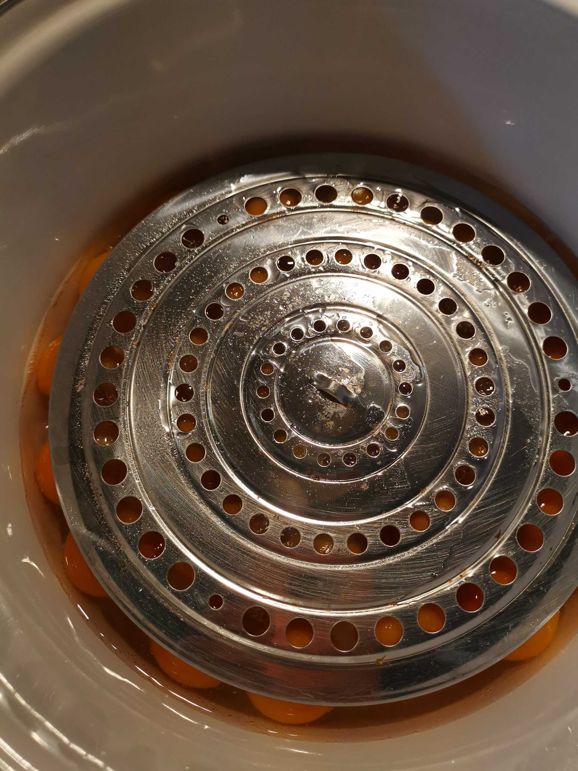 茹でこぼし、再び鍋に入れ、砂糖160g、水300mlで落し蓋をして、中火で沸騰させ、沸騰したら弱火で20分、金柑に味が染みたら、火を消し落し蓋をしたまま、粗熱を取る。