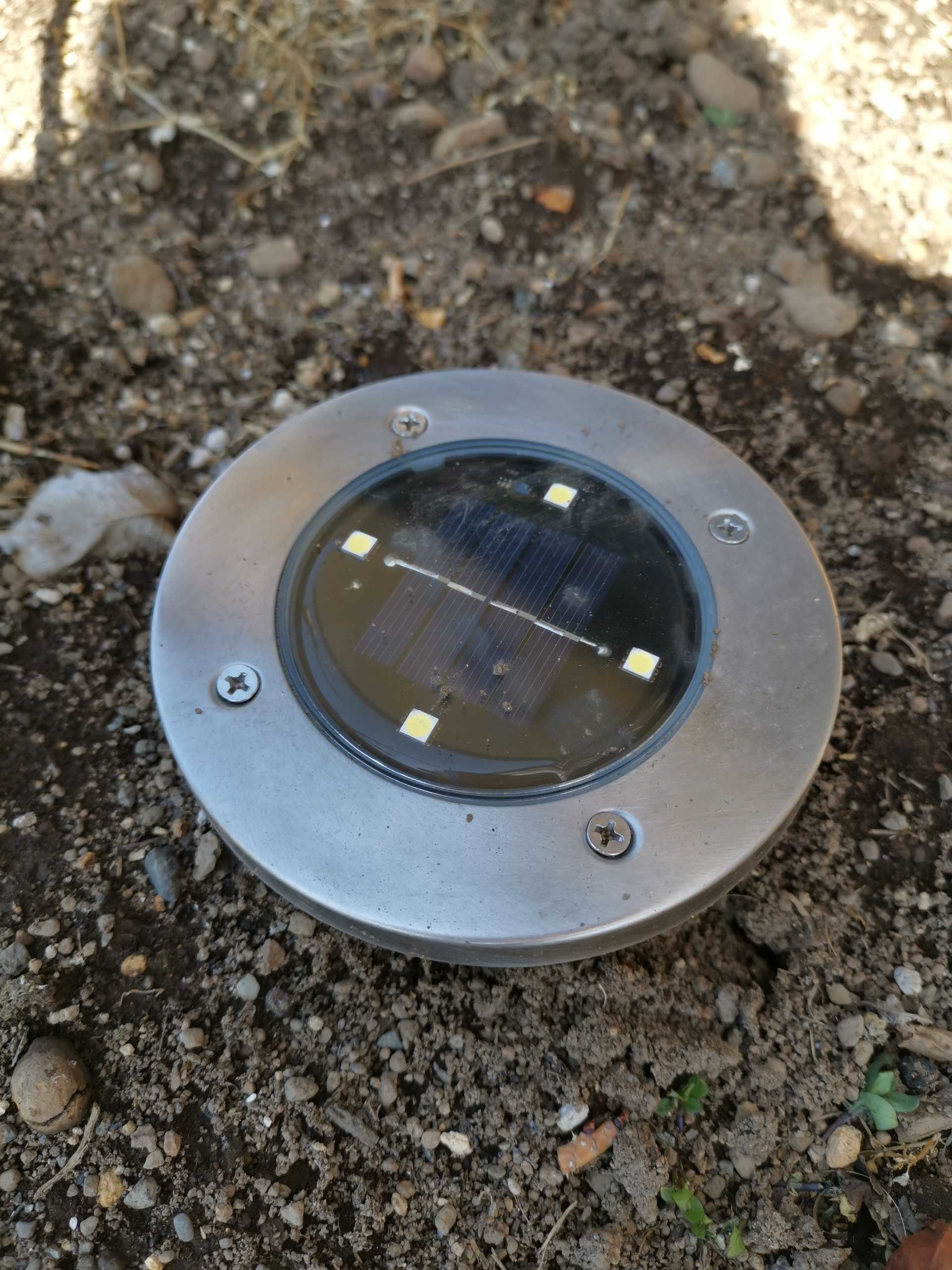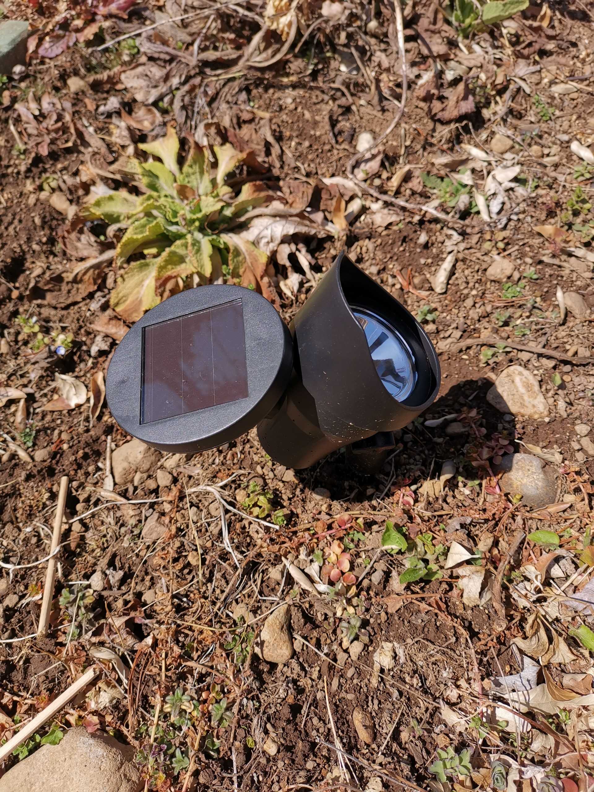 蓋を開けて、スイッチをオンにし、正面の庭に刺してみた。