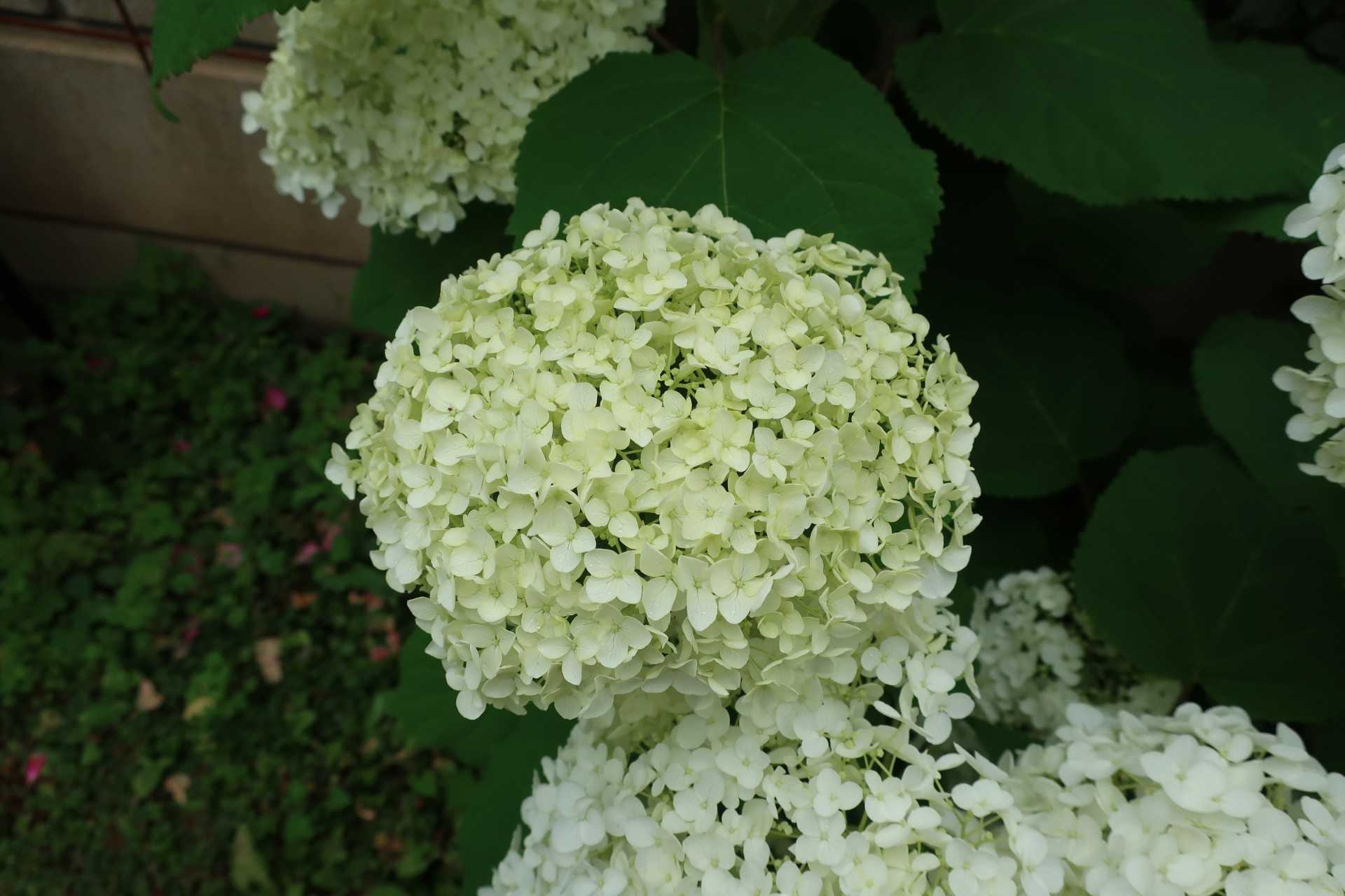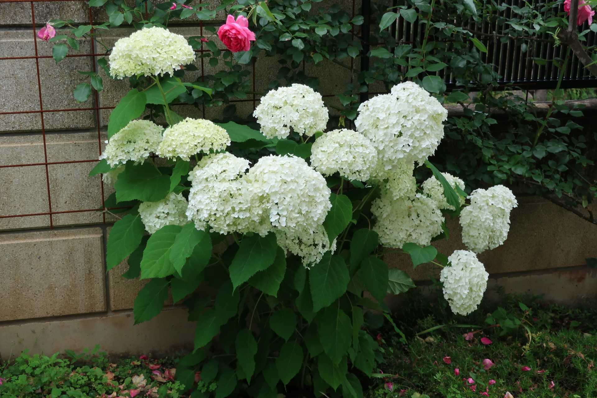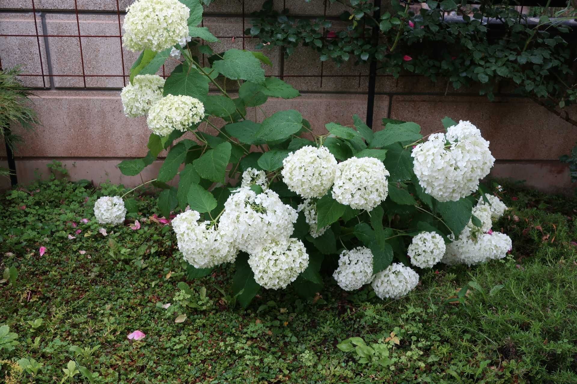 全体に白く、大きく咲いたと思ったら、連日の雨。たまらず、倒れて咲くアナベル。