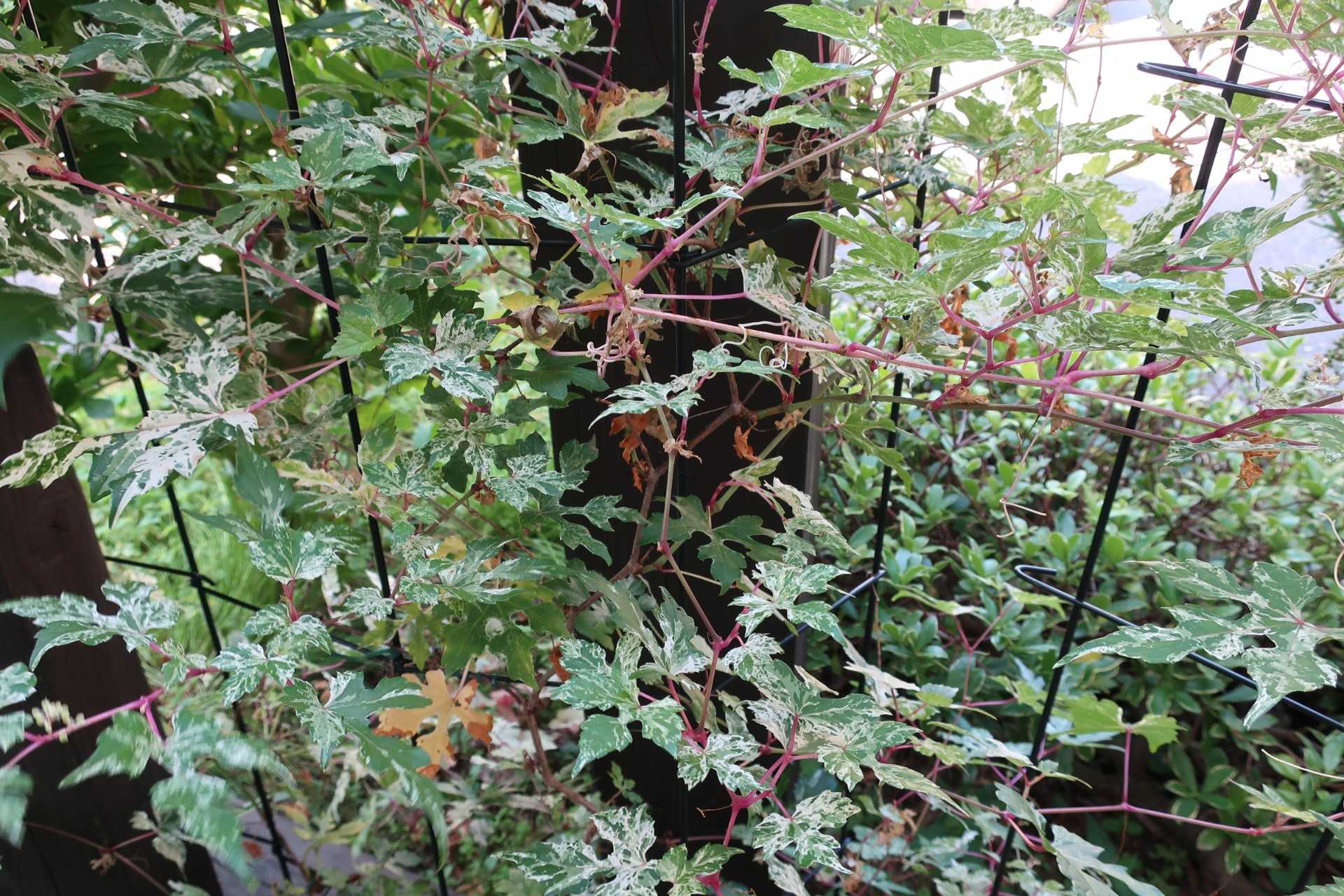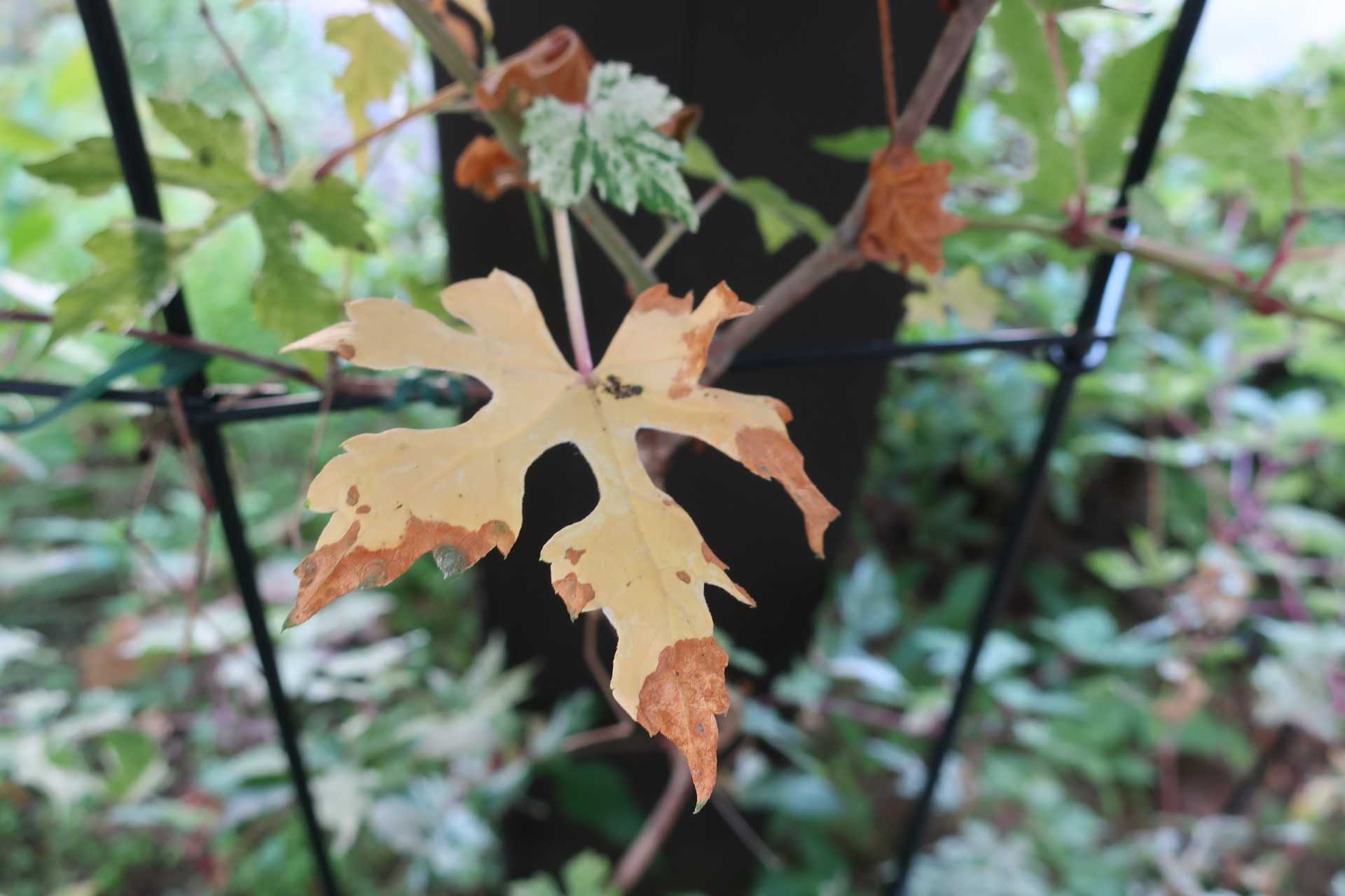 班入りノブドウが、ところどころ葉を枯らしている。慌てて水をたっぷりあげた。