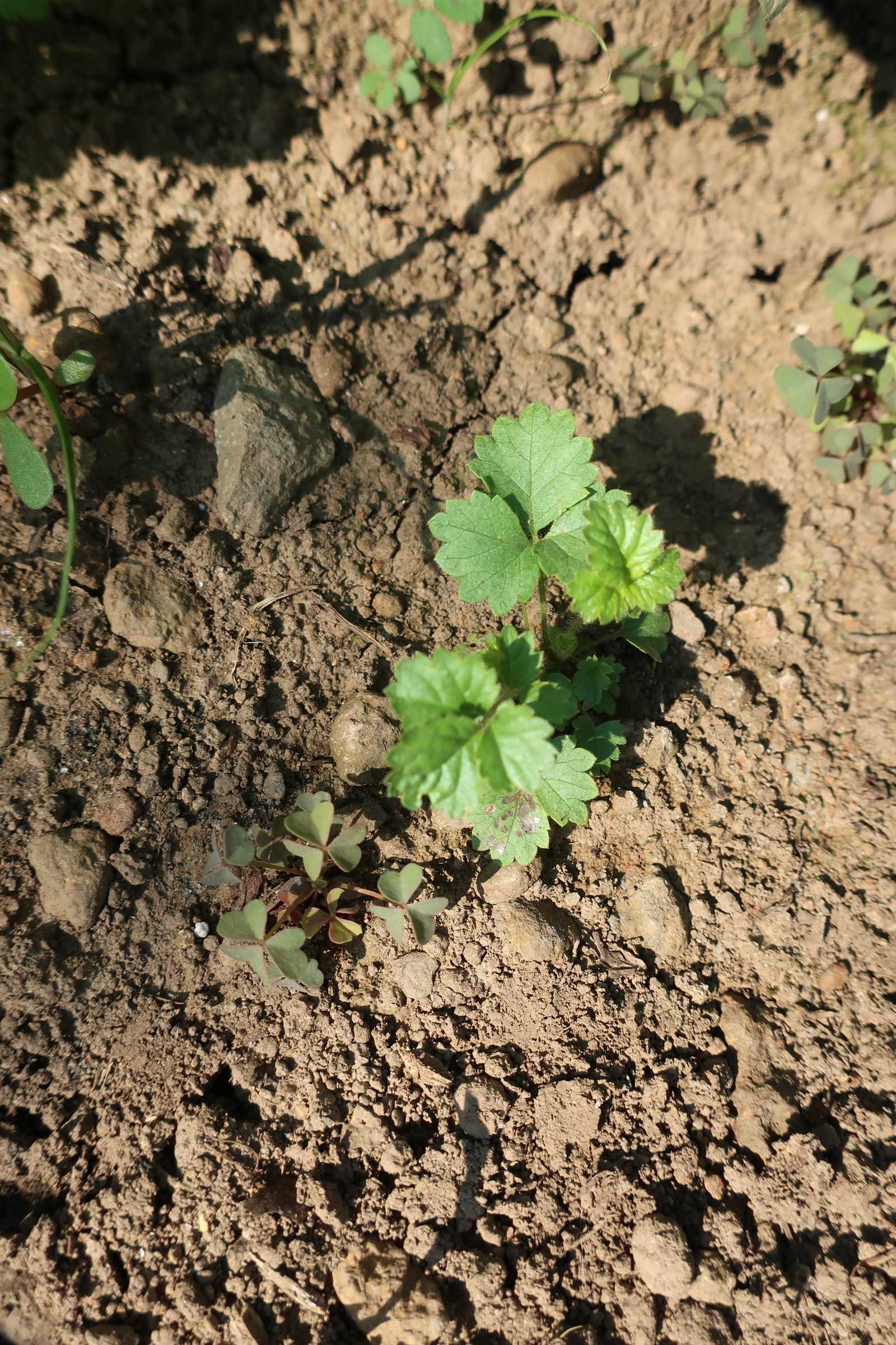 よく見回したら、いくつも芽が出ていた。もしかして、この子も、カラドンナみたいに抜くほど増えるタイプ?