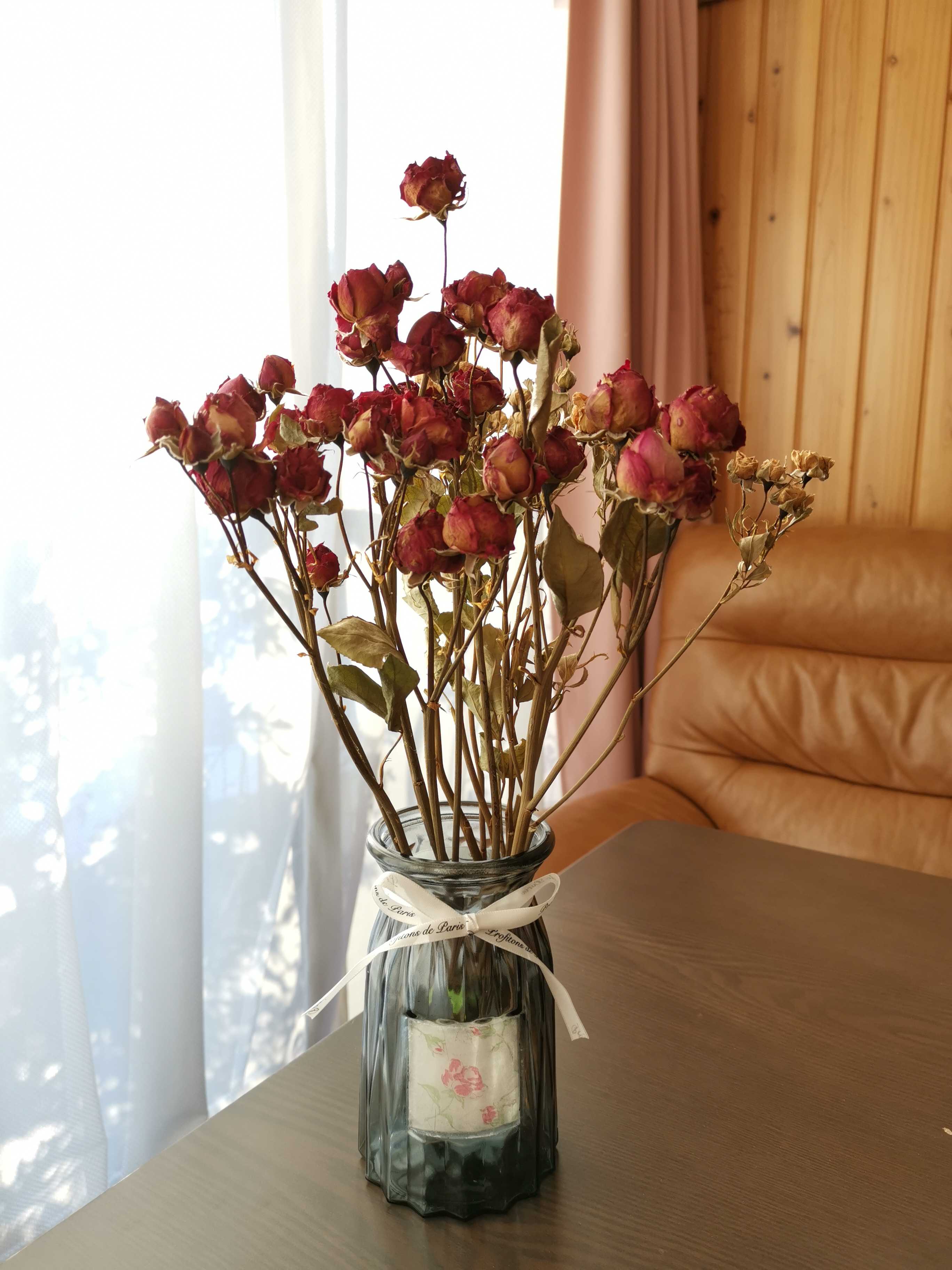 実はね、この花瓶の元の色のせいか、葉っぱがキレイに見えなくて、花瓶の内側に白い紙を貼ったの。