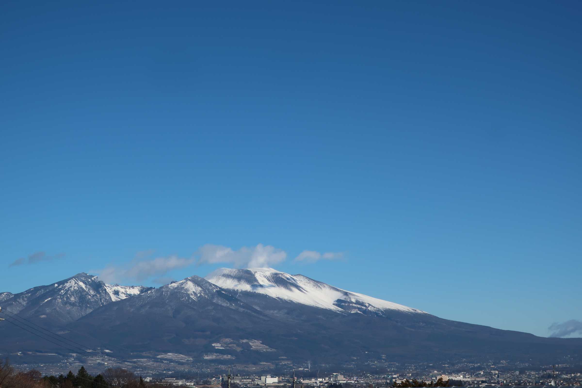 お雑煮を食べて、近くの神社に初詣に行って、山の上から今日の浅間山をパチリ。