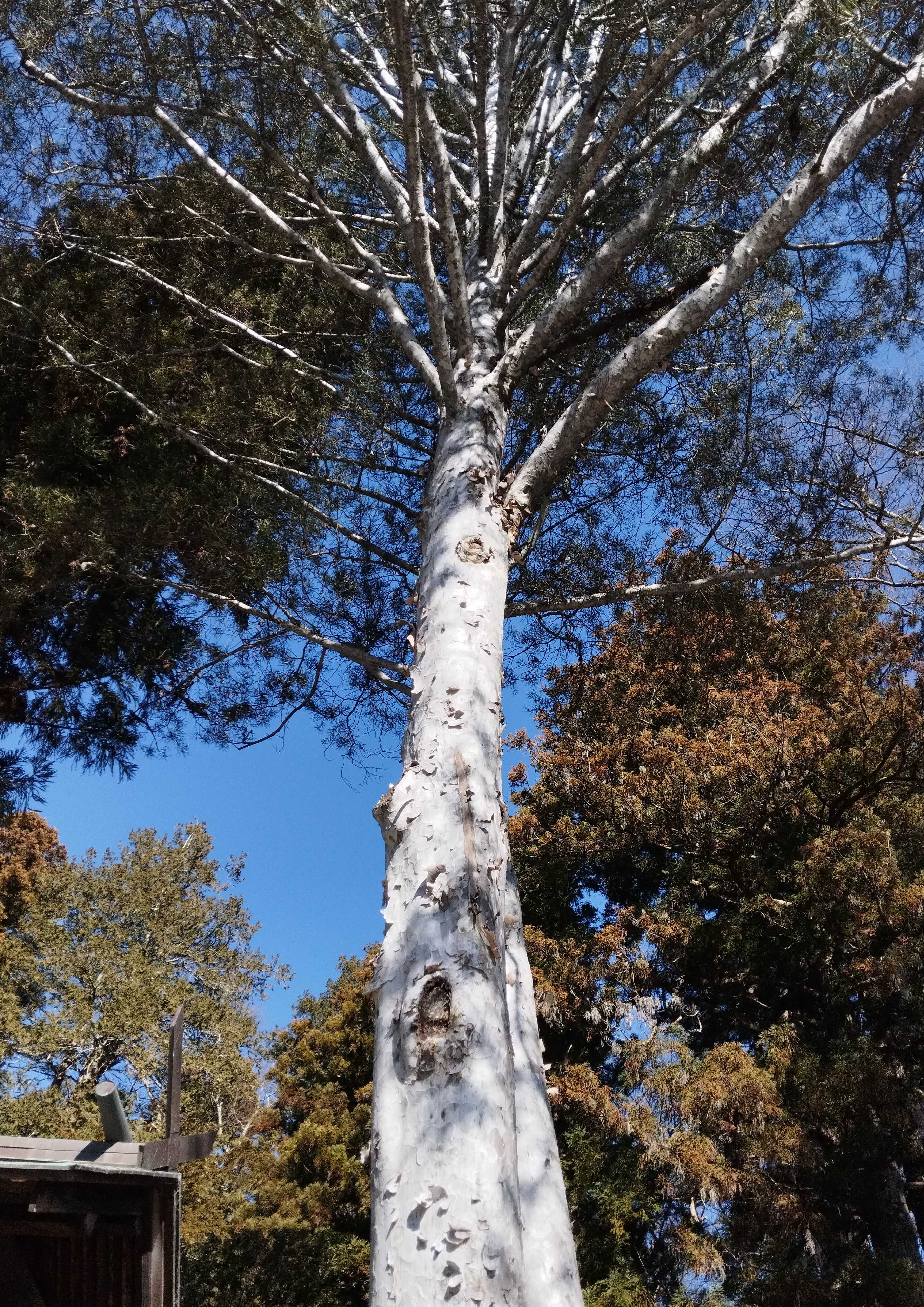 ナツツバキやサルスベリのような木肌をしていて、表皮がポロポロ捲れているところも…。
