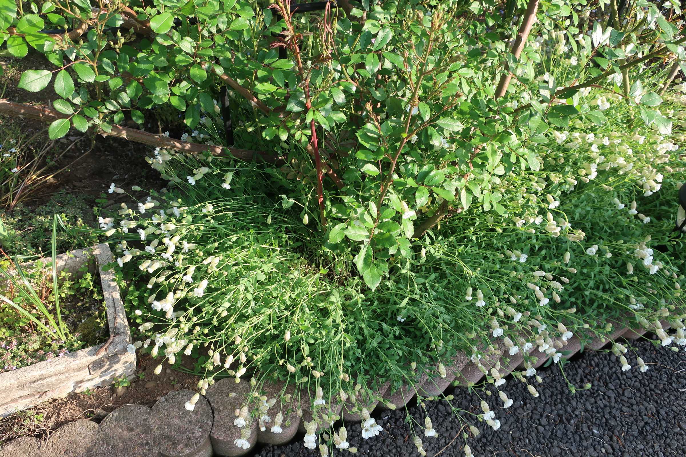 駐車場前の斑の無くなった、シレネユニフローラもぐったり。