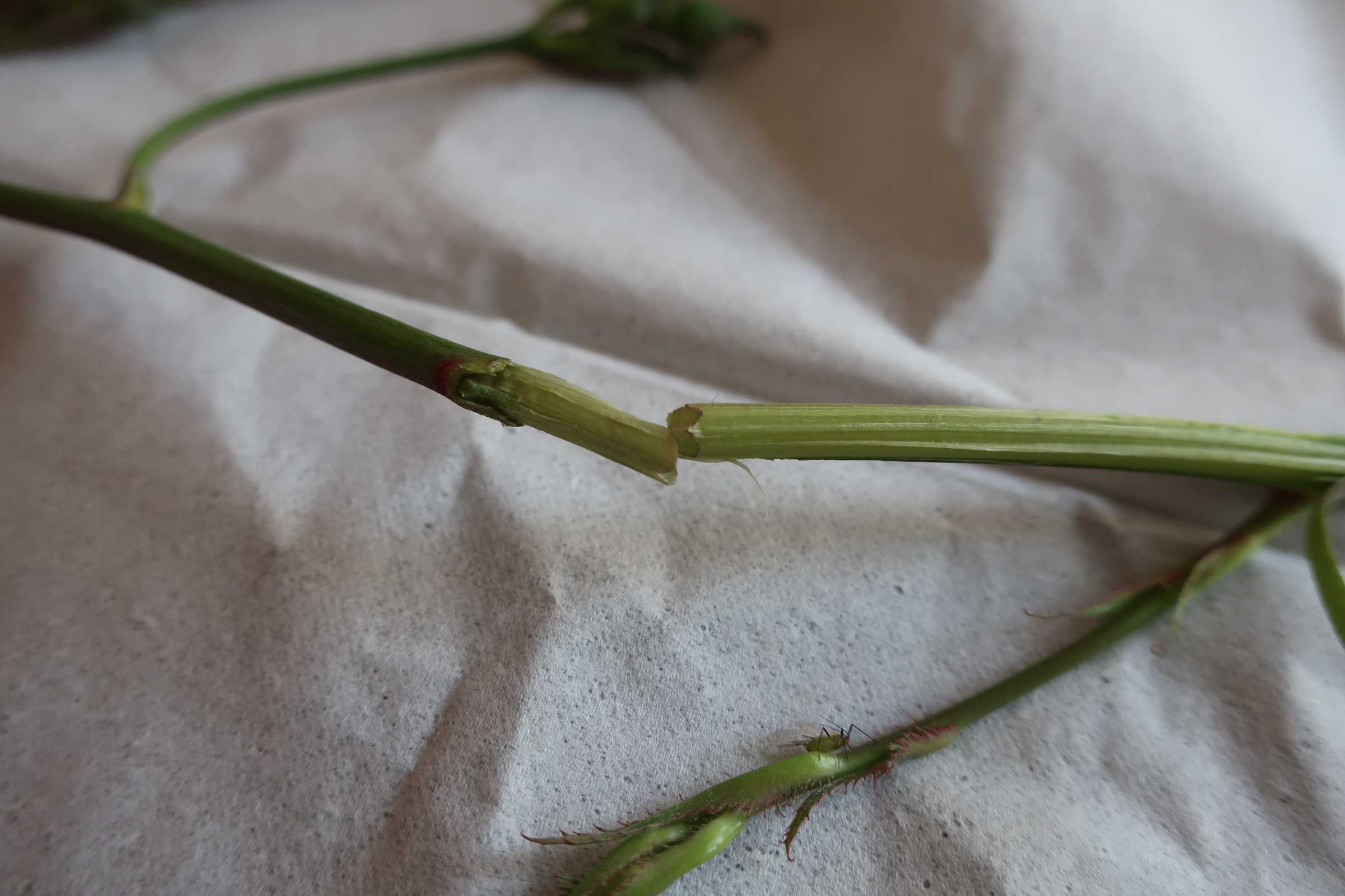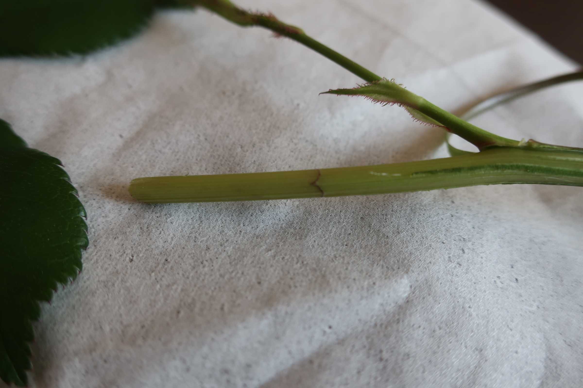 萎れているところの少し下の皮を剥いてみる。