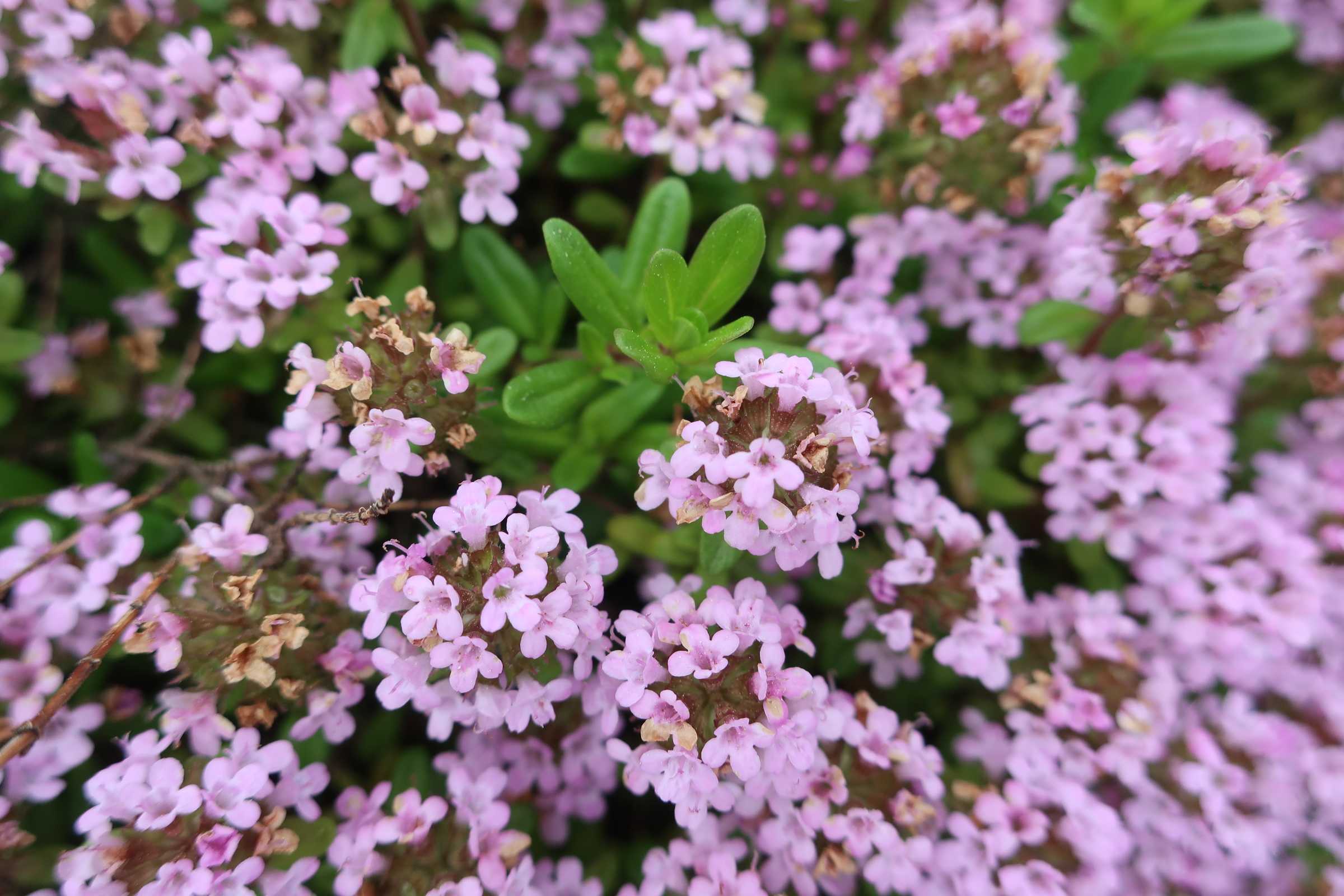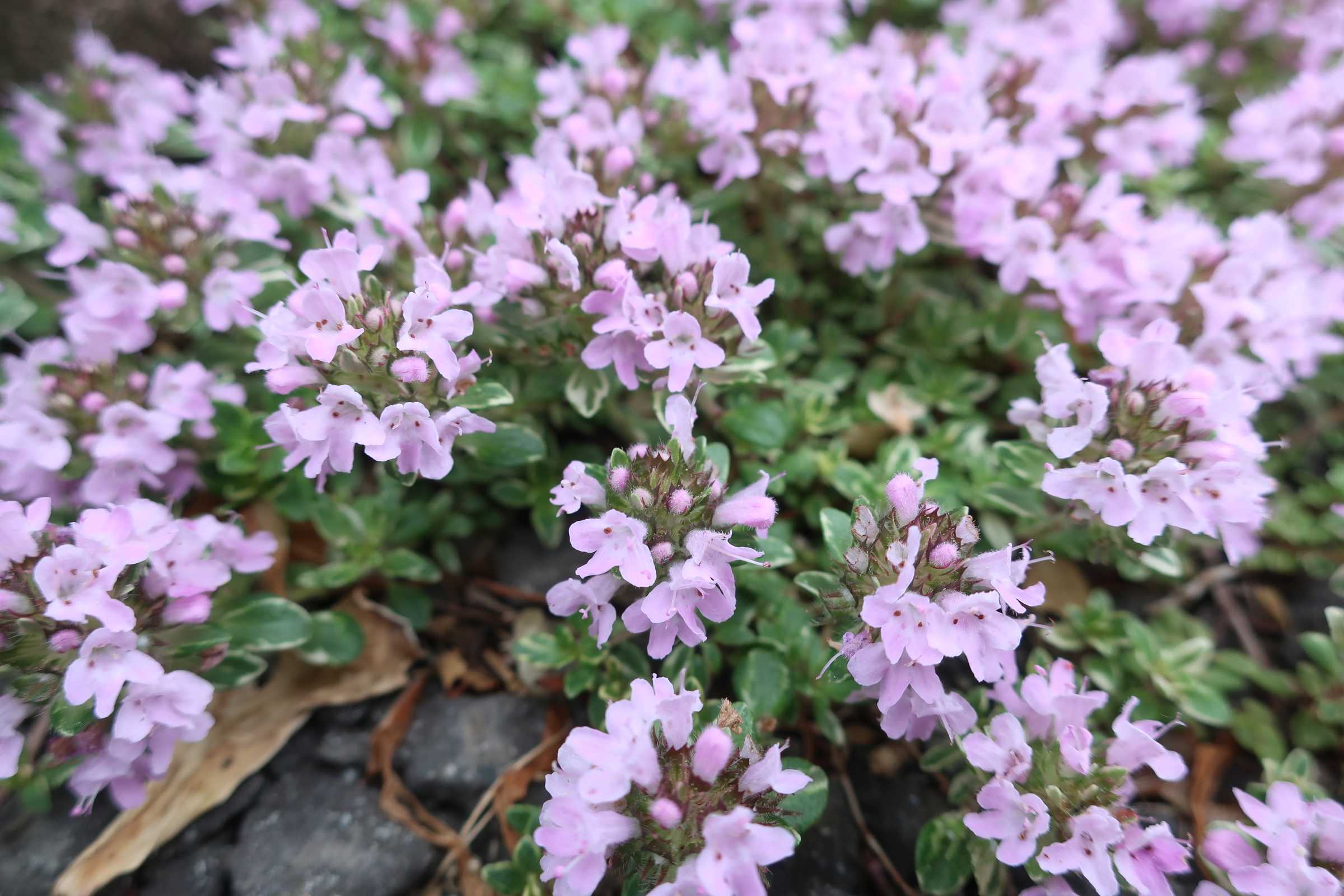 いつもお邪魔しているブログ様で、タイム・ロンギカウリスとイブキジャコウソウの違いはあるのか?ということで、私の庭には両方あるので、写真に撮ってみた。