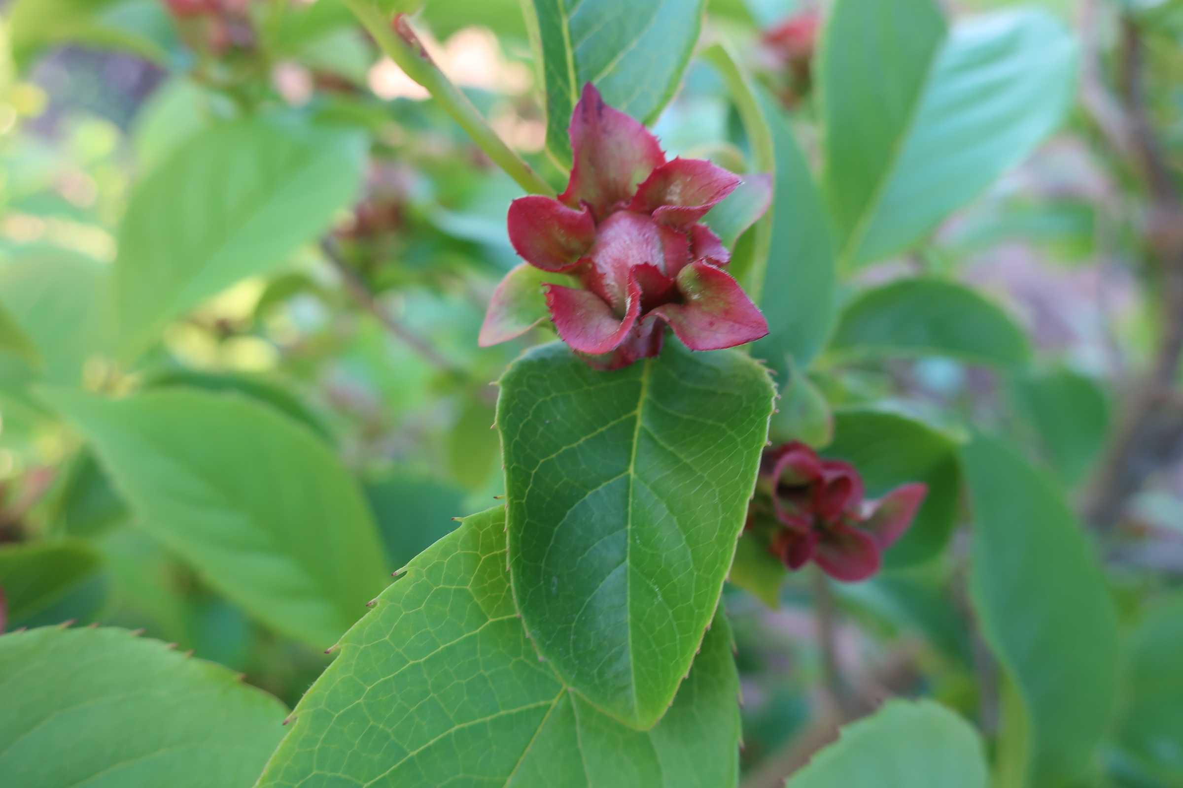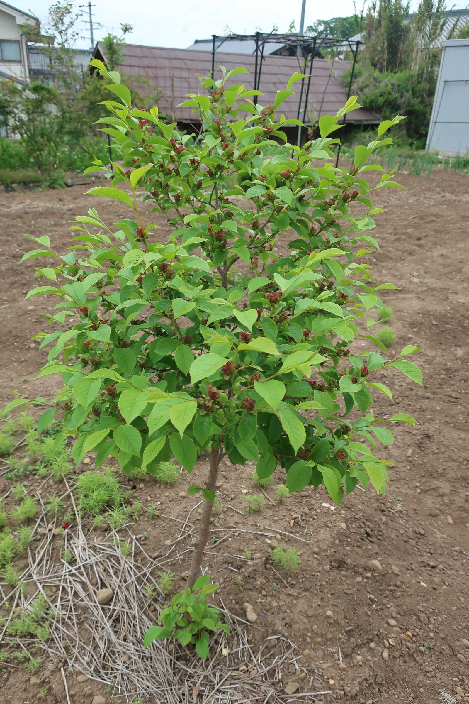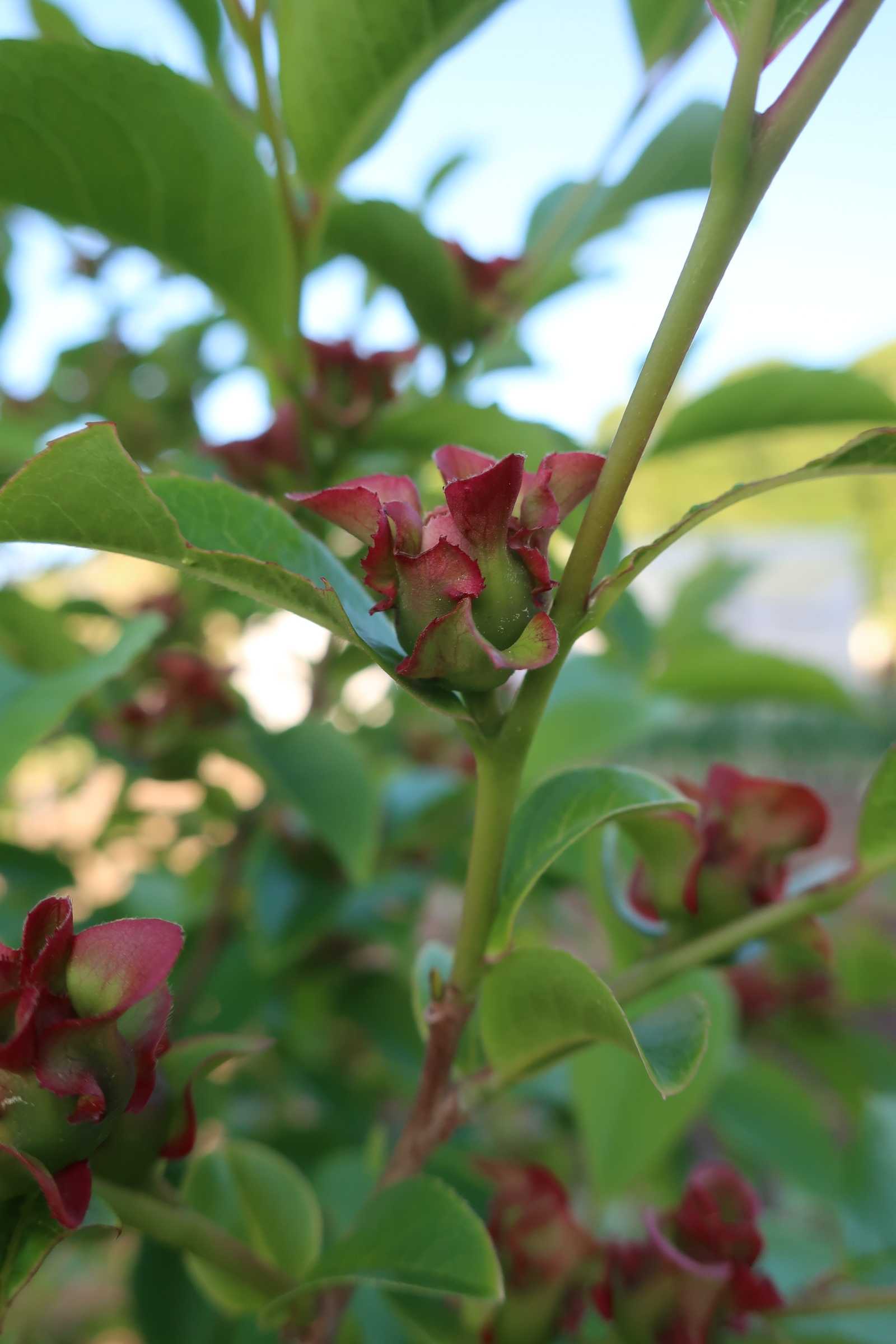 普通のシャラの蕾は丸いんだけど、これは角みたいのが生えている。