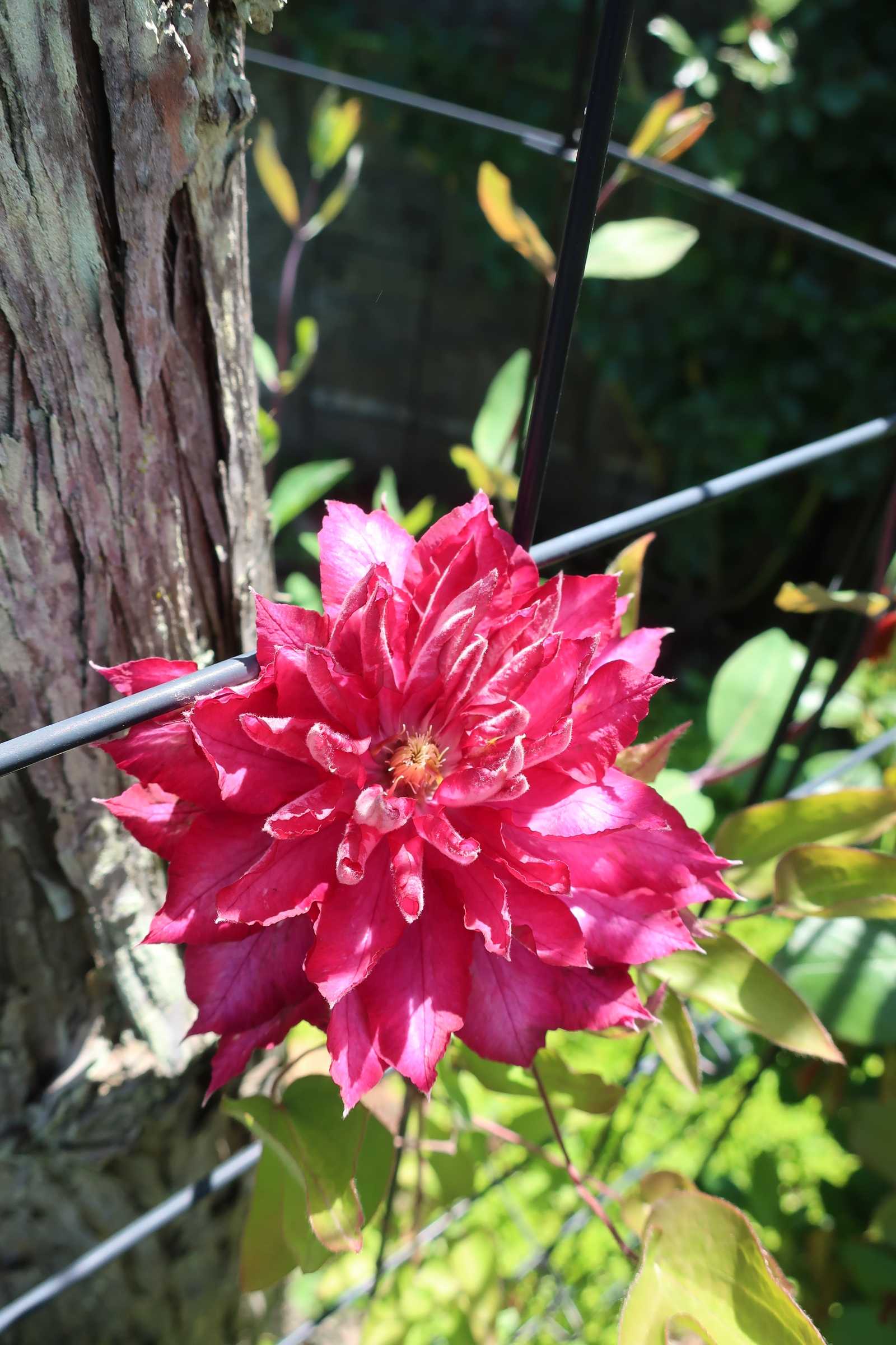 剪定を失敗して、枝が少ないから花も少なくなっちゃった、クレマチス花炎。