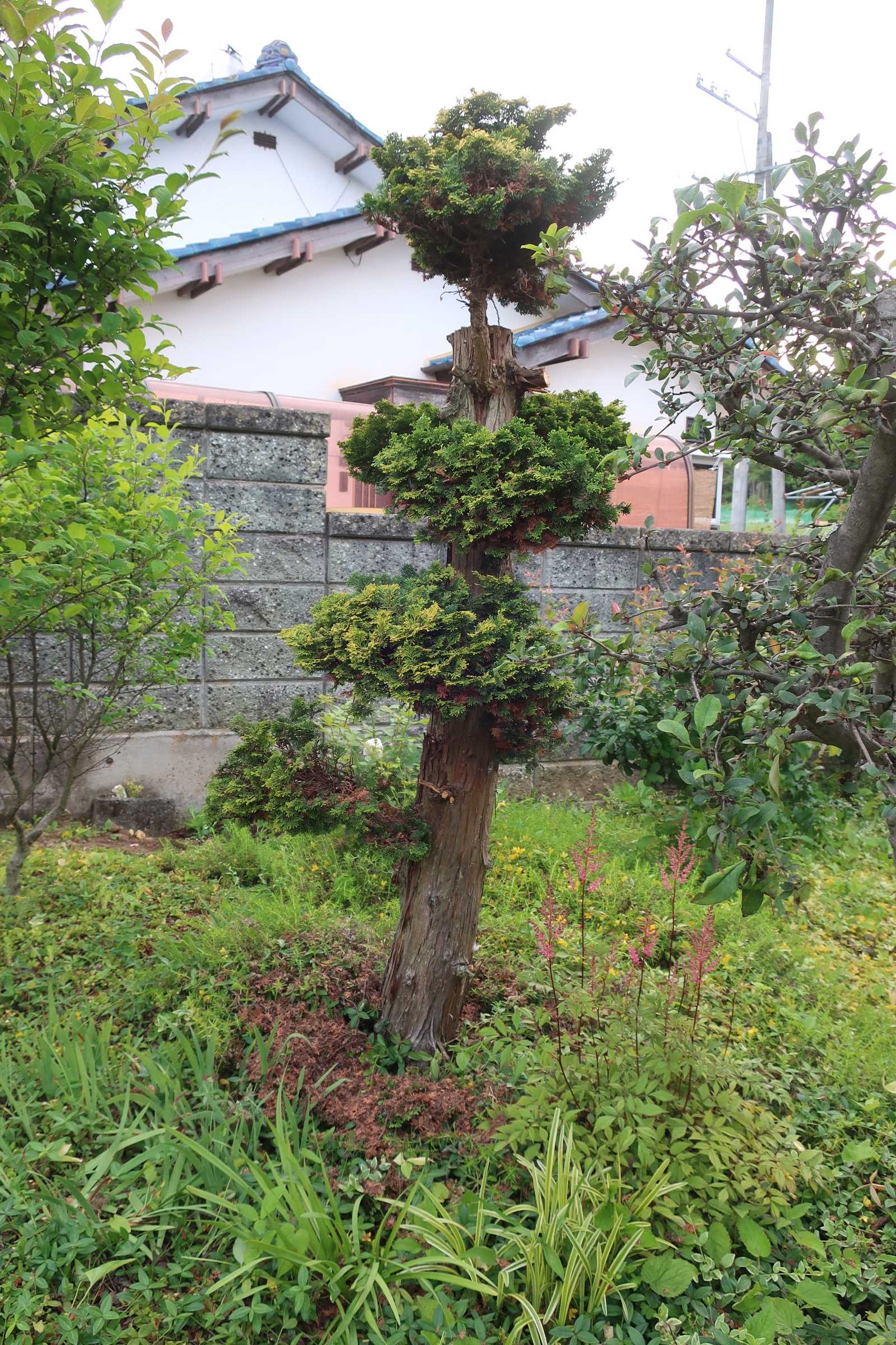 全然剪定しなかったから、もっさりと塊になった黄金ヒバが、どうにも気になりダンナに言うと「お母さん、カッコよく剪定して!」と言う。(バッサリ切り倒せばいいのに!)